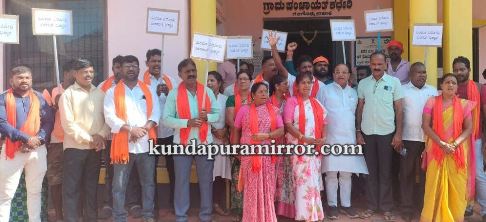 ಗಂಗೊಳ್ಳಿ ಗ್ರಾಮೀಣ ಕಾಂಗ್ರೆಸ್ ವತಿಯಿಂದ ಬೈಂದೂರು ಶಾಸಕರ ಹಿಂದು ವಿರೋಧಿ ನೀತಿ ಖಂಡಿಸಿ ಗಂಗೊಳ್ಳಿ ಗ್ರಾಮ ಪಂಚಾಯತ್ ಕಛೇರಿ ಮುಂಭಾಗ ಶನಿವಾರ ನಡೆದ ಪ್ರತಿಭಟನೆಯಲ್ಲಿ ಅವರು ಮಾತನಾಡಿದರು.