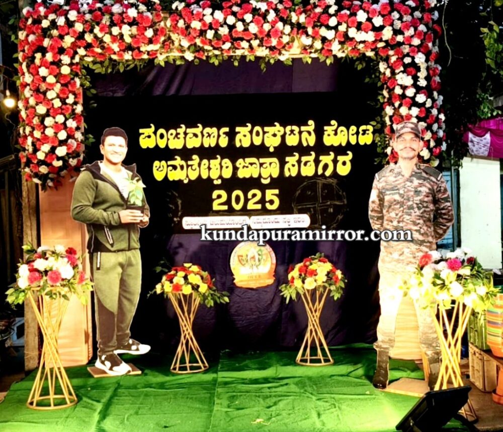 ಕುಂದಾಪುರ: ಇಲ್ಲಿನ ಕೋಟದ ಅಮೃತೇಶ್ವರಿ ಜಾತ್ರೆಯಲ್ಲಿ ಇತ್ತೀಚಿಗೆ ಕಾಶ್ಮೀರದಲ್ಲಿ ವಾಹನ ಅಪಘಾತದಲ್ಲಿ ನಿಧನ ಹೊಂದಿದ ಯೋಧ ಕುಂದಾಪುರ ತಾಲೂಕಿನ ಬೀಜಾಡಿಯ ಅನೂಪ್ ಪೂಜಾರಿ ಹಾಗೂ ಪ್ರಸಿದ್ಧ ಕನ್ನಡ ಚಿತ್ರನಟ ಪುನಿತ್ ರಾಜ್ ಕುಮಾರ್ ಅವರ ಸೆಲ್ಫಿ ಕಾರ್ನರ್ ವಿಶೇಷವಾಗಿ ಗಮನ ಸೆಳೆಯಿತು.