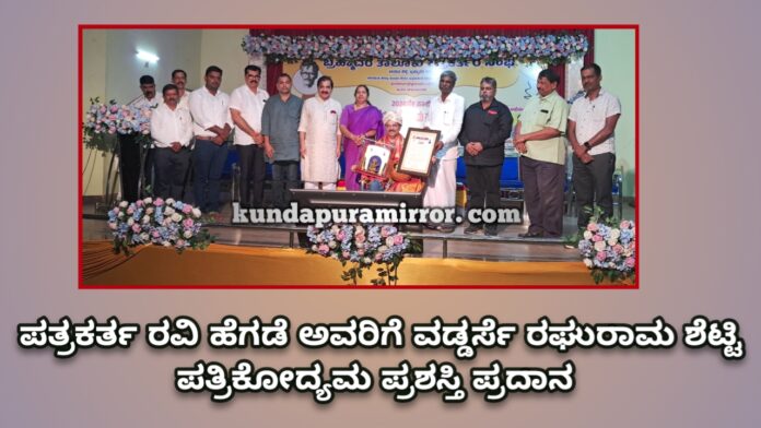 ಬ್ರಹ್ಮಾವರ ಬಂಟರ ಭವನದಲ್ಲಿ ಶನಿವಾರ ಉಡುಪಿ ಜಿಲ್ಲೆಯ ಬ್ರಹ್ಮಾವರ ತಾಲ್ಲೂಕು ಪತ್ರಕರ್ತರ ಸಂಘದ ವತಿಯಿಂದ ಉಡುಪಿ ಜಿಲ್ಲಾ ಕಾರ್ಯನಿರತ ಪತ್ರಕರ್ತರ ಸಂಘ ಮತ್ತು ಜಿಲ್ಲಾ ರಜತೋತ್ಸವ ಸಮಿತಿಯ ಸಹಕಾರದಲ್ಲಿ ವಡ್ಡರ್ಸೆ ರಘುರಾಮ ಶೆಟ್ಟಿ ಪತ್ರಿಕೋದ್ಯಮ ಪ್ರಶಸ್ತಿ ಪ್ರದಾನ ಸಮಾರಂಭದಲ್ಲಿ ಮಾತನಾಡಿದರು.