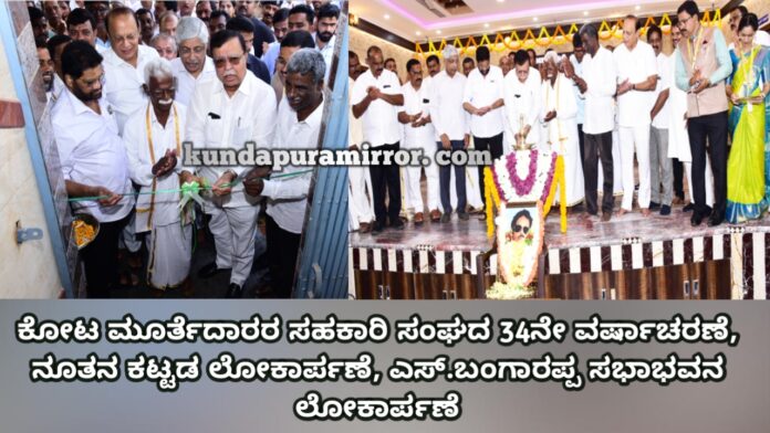 ಕೋಟ ಮೂರ್ತೆದಾರರ ಸಹಕಾರಿ ಸಂಘದ 34ನೇ ವರ್ಷಾಚರಣೆ, ನೂತನ ಕಟ್ಟಡ ಲೋಕಾರ್ಪಣೆ, ಎಸ್.ಬಂಗಾರಪ್ಪ ಸಭಾಭವನ ಲೋಕಾರ್ಪಣೆ