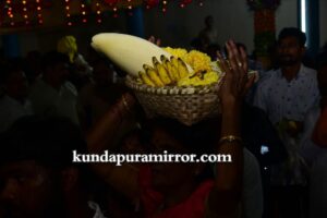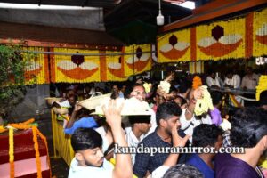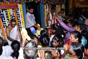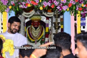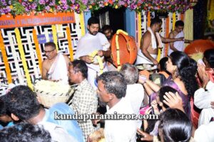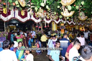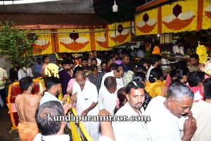ಬೈಂದೂರು ಶಾಸಕ ಗುರುರಾಜ್ ಗಂಟಿಹೊಳೆ, ಕರ್ನಾಟಕ ರಾಜ್ಯೋತ್ಸವ ಪ್ರಶಸ್ತಿ ಪುರಸ್ಕೃತ ಉದ್ಯಮಿ ಕೃಷ್ಣಮೂರ್ತಿ ಮಂಜ, ಮಾಜಿ ಶಾಸಕ ಕೆ.ಗೋಪಾಲ ಪೂಜಾರಿ, ಸುಕುಮಾರ್ ಶೆಟ್ಟಿ, ರಘುರಾಮ ಶೆಟ್ಟಿ , ವಂಡಬಳ್ಳಿ ಜಯರಾಮ್ ಶೆಟ್ಟಿ, ಡಾ ಅತುಲ್ ಕುಮಾರ್ ಶೆಟ್ಟಿ, ಗ್ರಾಮ ಪಂಚಾಯತ್ ಅಧ್ಯಕ್ಷ ರವೀಂದ್ರ ಶೆಟ್ಟಿ, ದೇಗುಲದ ಪಾತ್ರಿಗಳು,ಅರ್ಚಕರು ಗಣ್ಯರು ಉಪಸ್ಥಿತರಿದ್ದರು. ರಾತ್ರಿ ಗೆಂಡಸೇವೆ ನಡೆಯಲಿದೆ.