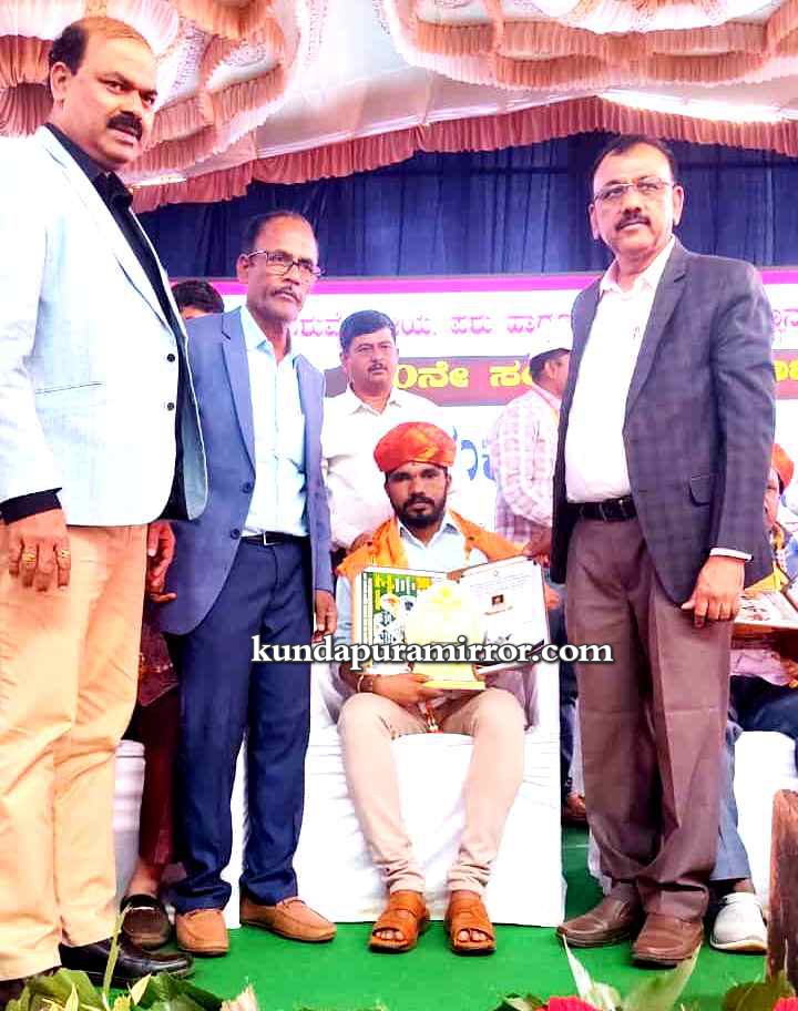 ಕುಂದಾಪುರ: ಕರ್ನಾಟಕ ಪಶುವೈದ್ಯಕೀಯ, ಪಶು ಹಾಗೂ ಮೀನುಗಾರಿಕೆ ವಿಜ್ಞಾನಗಳ ವಿಶ್ವವಿದ್ಯಾಲಯ, ಬೀದರ್ ಇದರ 20ನೇ ಸಂಸ್ಥಾಪನಾ ದಿನಾಚರಣೆ ಹಾಗೂ ಜಾನುವಾರು, ಕುಕ್ಕುಟ ಮತ್ತು ಮತ್ಸ್ಯಮೇಳ-2025ರ ಕಾರ್ಯಕ್ರಮದ ಮೀನುಗಾರಿಕೆ ವಿಭಾಗದಲ್ಲಿ ಸಾಧಿಸಿದ ಪ್ರಗತಿಯನ್ನು ಪರಿಗಣಿಸಿ ಬ್ರಹ್ಮಾವರ ತಾಲೂಕಿನ, ಕೋಡಿ ಗ್ರಾಮದ ಬಚ್ಚ ಪೂಜಾರಿಯವರ ಪುತ್ರ ಸುದಿನ ಕೋಡಿ ಇವರಿಗೆ ಶ್ರೇಷ್ಠ ರೈತ ಪ್ರಶಸ್ತಿ ನೀಡಿ ಗೌರವಿಸಲಾಯಿತು.