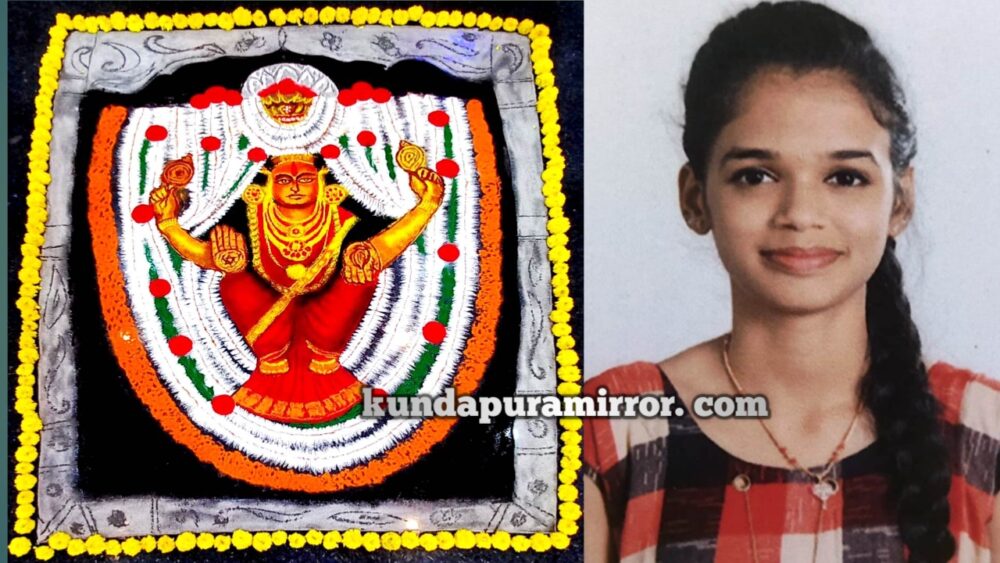 ಕುಂದಾಪುರ :ಇಲಿನ ಕೋಟತಟ್ಟು ಹಂದಟ್ಟು ಪರಿಸರದ ಪ್ರಜ್ಞಾ ಗೀತಾ ಪೂಜಾರಿ ತನ್ನ ಕೈಯಿಂದ ರಂಗೋಲಿಯ ಮೂಲಕ ಕಟೀಲು ಶ್ರೀ ದುರ್ಗಾಪರಮೇಶ್ವರಿ ದೇವಿಯ ಚಿತ್ರವನ್ನು ಬಿಡಿಸಿ ಸೈ ಎನ್ನಿಸಿಕೊಂಡಿದ್ದಾರೆ.