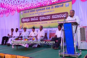 ಕುಂದಾಪುರ, ಫೆ.10 :ಆರ್ಥಿಕ ವ್ಯವಹಾರ ನಡೆಯುವ ಸ್ಥಳ ದೇವಸ್ಥಾನವಿದ್ದಂತೆ. ಇಲ್ಲಿ ಯಾವುದೇ ಭೇದ ಭಾವ ಇರಬಾರದು. ಎಲ್ಲರಿಗೂ ಉತ್ತಮ ಸೇವೆ ಸಿಗುವಂತಾಗಬೇಕು. ಕೃಷಿಕರು ಯಾವತ್ತು ಮೋಸ ಮಾಡುವುದಿಲ್ಲ. ಕೃಷಿಕರಿಗೆ ಧೈರ್ಯದಿಂದ ಸಾಲ ನೀಡಬಹುದು. ಕೃಷಿಕರಿಗೆ ಹೆಚ್ಚು ಹೆಚ್ಚು ನೆರವಾದರೆ ವ್ಯವಸಾಯ ಸೆವಾ ಸಹಕಾರಿ ಸಂಘಗಳ ದ್ಯೇಯ ಅರ್ಥಪೂರ್ಣವಾಗುತ್ತದೆ. ಕರ್ಕುಂಜೆ ವ್ಯವಸಾಯ ಸೇವಾ ಸಹಕಾರಿ ಸಂಘ ಗ್ರಾಹಕರಿಗೆ ಉತ್ತಮ ಸೇವೆ ನೀಡುತ್ತಾ ಜನಮನ್ನಣೆ ಪಡೆದಿದೆ ಎಂದು ಕಮಲಶಿಲೆಯ ಶ್ರೀ ಬ್ರಾಹ್ಮೀ ದುರ್ಗಾಪರಮೇಶ್ವರಿ ದೇವಸ್ಥಾನದ ಆನುವಂಶಿಕ ಆಡಳಿತ ಮೊಕ್ತೇಸರ ಶೆಟ್ಟಿಪಾಲು ಸಚ್ಚಿದಾನಂದ ಚಾತ್ರ ಹೇಳಿದರು.