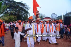 ಗಂಗೊಳ್ಳಿಯಿಂದ ದೋಣಿ ಮೂಲಕ ಸಾಗಿಬಂದ ಶೋಭಾಯಾತ್ರೆಯು ಬಸ್ರೂರು ಮಂಡಿಕೇರಿ ಹೊಳೆಬಾಗಿಲಿನಿಂದ ಶ್ರೀ ಮಹಾಲಿಂಗೇಶ್ವರ ದೇವಸ್ಥಾನದವರೆಗೆ ನಡೆಯಿತು.