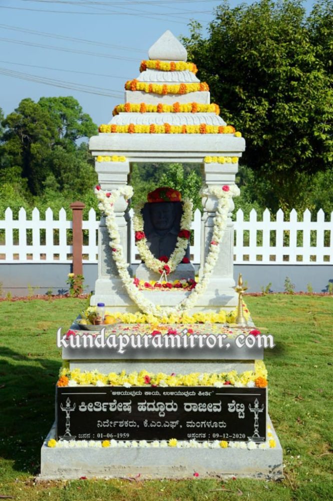 ದಿ. ಹದ್ದೂರು ರಾಜೀವ ಶೆಟ್ಟಿ ಪುಣ್ಯಸ್ಮರಣೆ ಪ್ರಯುಕ್ತ ಮನೆಯ ಆವರಣದ ಸಮಾಧಿ ಸ್ಥಳದಲ್ಲಿ ನಿರ್ಮಿಸಿದ ಪುತ್ಥಳಿಯನ್ನು ಬೈಂದೂರು ಶಾಸಕ ಬಿ.ಎಮ್.ಸುಕುಮಾರ ಶೆಟ್ಟಿ ಅನಾವರಣಗೊಳಿಸಿದರು.