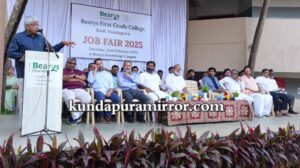 ಕುಂದಾಪುರದ ಕೋಡಿ ಬ್ಯಾರೀಸ್ ಸಮೂಹ ಶಿಕ್ಷಣ ಸಂಸ್ಥೆಯ ಬ್ಯಾರೀಸ್ ಪ್ರಥಮ ದರ್ಜೆ ಕಾಲೇಜು ವತಿಯಿಂದ ಫೆ.22 ಶನಿವಾರದಂದು ಕೋಡಿ ಬ್ಯಾರೀಸ್ ನಾಲೆಡ್ಜ್ ಕ್ಯಾಂಪಸ್ನಲ್ಲಿ ಹಮ್ಮಿಕೊಳ್ಳಲಾದ ಉದ್ಯೋಗ ಮೇಳ-2025 ಕಾರ್ಯಕ್ರಮದಲ್ಲಿ ಅವರು ಮಾತನಾಡಿದರು.