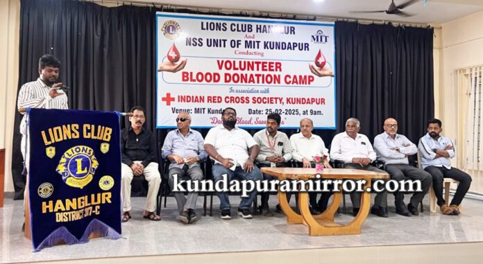 ಕುಂದಾಪುರ : ಹಂಗಳೂರು ಲಯನ್ಸ್ ಕ್ಲಬ್ ವತಿಯಿಂದ ಮೂಡ್ಲಕಟ್ಟೆ ತಾಂತ್ರಿಕ ಕಾಲೇಜಿನಲ್ಲಿ ಹಮ್ಮಿಕೊಂಡ ಬೃಹತ್ ರಕ್ತದಾನ ಶಿಬಿರವನ್ನು ಡಾ. ಮೇಲ್ವಿನ್ ಡಿ’ ಸೋಜಾ ಉದ್ಘಾಟಿಸಿದರು.
