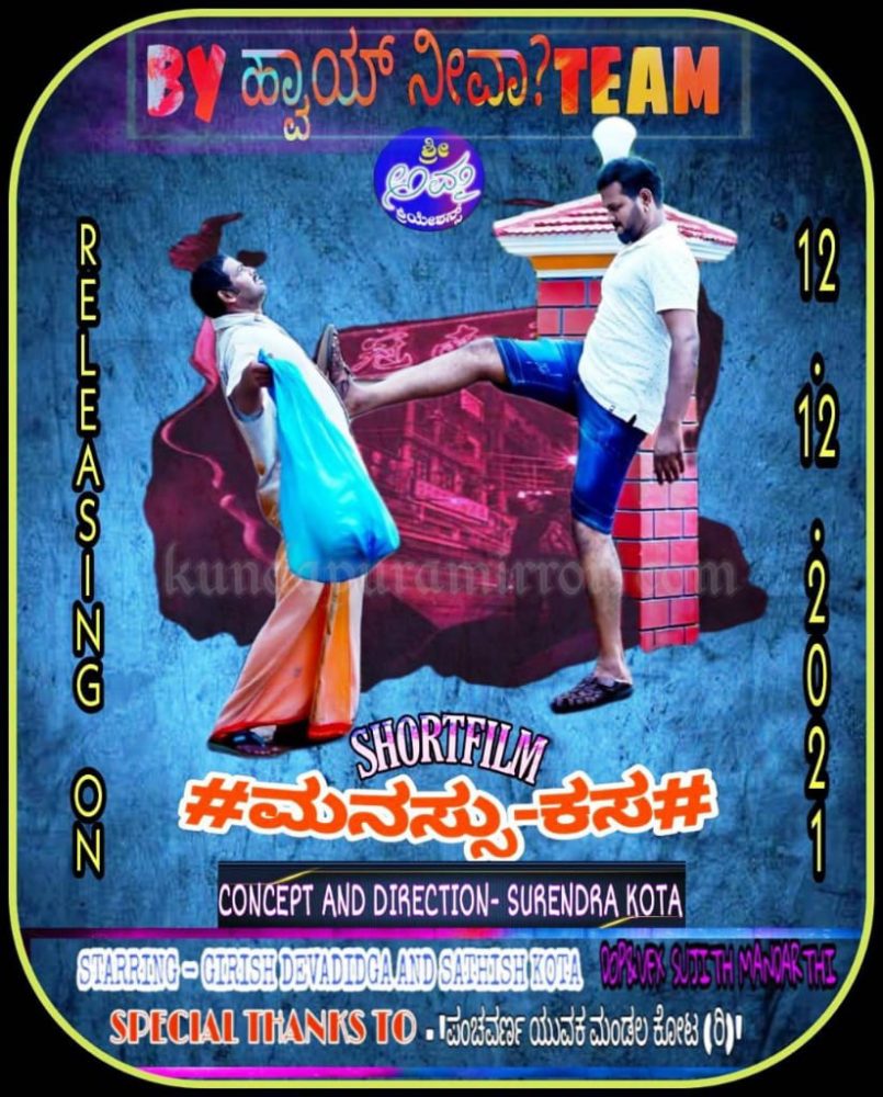 ಕೋಟ: ಪಂಚವರ್ಣ ಯುವಕ ಮಂಡಲದ ನೇತ್ರತ್ವದಲ್ಲಿ ಡಿ.12ರಂದು ನಡೆಯುವ ನೂರನೇ ವಾರದ ಸ್ವಚ್ಛತಾ ಸಂಭ್ರಮದ ಅಂಗವಾಗಿ ಬೃಹತ್ ಸ್ವಚ್ಛತಾ ಅಭಿಯಾನದ ಪ್ರಯುಕ್ತ ಸುರೇಂದ್ರ ಕೋಟ ರಚನೆ, ನಿರ್ದೇಶನದಲ್ಲಿ ‘ಶ್ರೀ ಅಮ್ಮ ಕ್ರೀಯೇಶನ್ಸ್’ ಅಡಿಯಲ್ಲಿ ಹ್ವಾಯ್ ನೀವಾ? ತಂಡದಿಂದ ಪರಿಸರ ಜಾಗೃತಿ ಕಿರು ಚಿತ್ರ “ಮನಸ್ಸು -ಕಸ” ಪಂಚವರ್ಣ ಯುವಕ ಮಂಡಲ ಕೋಟದ ನೂರನೇ ಸ್ವಚ್ಛತಾ ಕಾರ್ಯಕ್ರಮಕ್ಕೆ ಅರ್ಪಣೆಯಾಗಿ ಬಿಡುಗಡೆಗೊಳ್ಳಲಿದೆ.