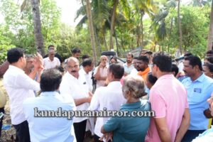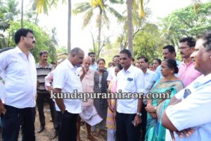 ಕುಂದಾಪುರ: ಕುಂದಾಪುರ ಪುರಸಭಾ ವ್ಯಾಪ್ತಿಯ ಕೋಡಿ ಪರಿಸರದಲ್ಲಿ ಕೃಷಿ ಜಮೀನು ಮತ್ತು ಮನೆಗಳಿಗೆ ಉಪ್ಪು ನೀರು ನುಗ್ಗಿ ಹಾನಿಯಾದ ಪ್ರದೇಶಗಳಿಗೆ ಶಾಸಕ ಎ.ಕಿರಣ್ ಕುಮಾರ್ ಕೊಡ್ಗಿ ಶನಿವಾರ ಭೇಟಿ ನೀಡಿ ಪರಿಶೀಲನೆ ನಡೆಸಿದರು.