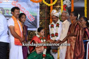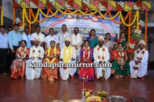 ಕುಂದಾಪುರ :ಕೊಲ್ಲೂರು ಶ್ರೀ ಮೂಕಾಂಬಿಕಾ ದೇಗುಲದ ಸ್ವರ್ಣ ಮುಖಿ ರಂಗ ಮಂಟಪದಲ್ಲಿ ಮಾ. 9ರಂದು ಸರಕಾರದ ಮಾಂಗಲ್ಯ ಭಾಗ್ಯ ಕಾರ್ಯಕ್ರಮದಡಿ ಉಚಿತ ಸರಳ ಸಾಮೂಹಿಕ ವಿವಾಹ ಕಾರ್ಯಕ್ರಮ ನಡೆಯಿತು.