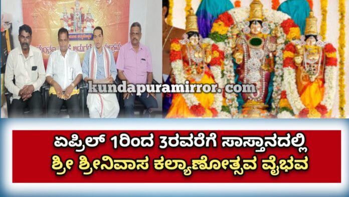 ಏಪ್ರಿಲ್ 3ರಂದು ಬೆಳಿಗ್ಗೆ 9.00 ರಿಂದ ಸ್ಥಳ ಶುದ್ದಿ ,ಪುಣ್ಯಾಹವಾಚನ, ಸಾಮೂಹಿಕ ಸತ್ಯನಾರಾಯಣ ಪೂಜೆ, ಸಾಮೂಹಿಕ ವಿಷ್ಣು ಸಹಸ್ರನಾಮ ಪಾರಾಯಣ, ಮಧ್ಯಾಹ್ನ 12 ರಿಂದ ಮಹಾಮಂಗಳಾರತಿ, ಪ್ರಸಾದ ವಿನಿಯೋಗ, ಮಧ್ಯಾಹ್ನ 3 ರಿಂದ ಸಾಲಿಗ್ರಾಮ ಶ್ರೀ ಗುರುದೇನರಸಿಂಹ ದೇವಸ್ಥಾನದಿಂದ ಕುಣಿತ ಭಜನೆ, ಸ್ತಬ್ದ ಚಿತ್ರ, ಚಂಡೆ ಹಾಗೂ ಸಕಲ ಮಂಗಳವಾದ್ಯಗಳೊಂದಿಗೆ ಪದ್ಮಾವತಿ ಸಹಿತ ಶ್ರೀ ಶ್ರೀನಿವಾಸ ದೇವರ ದಿವ್ಯ ಶೋಭಾಯಾತ್ರೆ ನಡೆಯಲಿದೆ. ಸಂಜೆ 5ರಿಂದ ಶ್ರೀ ದೇವರ ವಿವಾಹ ಮಂಟಪ ಪ್ರವೇಶ, ಸೀಮಾಂತ ಪೂಜೆ, ವಿವಾಹ ಮಂಟಪಕ್ಕೆ ಶ್ರೀ ಪದ್ಮಾವತಿ ದೇವಿಯ ಆಗಮನ, ಸ್ವರ್ಣಮಣಿ ಬಂಧನ, ಮಹೂರ್ತ ನಿರೀಕ್ಷಣೆ, ಮಾಲಾಧಾರಣೆ, ಸಂಜೆ6.30ಕ್ಕೆ ಓದಗುವ ಗೋಧೂಳಿ ಲಗ್ನ ಸುಮೂರ್ತದಲ್ಲಿ ಶ್ರೀ ಶ್ರೀನಿವಾಸ ದೇವರಿಗೆ ಶ್ರೀ ಪದ್ಮಾವತಿ ದೇವಿಯು ಕನ್ಯಾದಾನ “ಶ್ರೀ ಶ್ರೀನಿವಾಸ ಕಲ್ಯಾಣೋತ್ಸವ” ಕಂಕಣ, ಮಂಗಳಸೂತ್ರ ಸಮರ್ಪಣೆ, ವಿವಾಹ ಹೋಮ, ಮಂಗಳಾಚಾರಣೆ, ಮಹಾಪ್ರಸನ್ನ ಪೂಜೆ, ಅಷ್ಟಾವಧಾನ ಸೇವೆ, ತೀರ್ಥಪ್ರಸಾದ ವಿನಿಯೋಗ ಸಾರ್ವಜನಿಕ ಮಹಾ ಅನ್ನಸಂತರ್ಪಣೆ ನಡೆಯಲಿದೆ ಎಂದು ಅವರು ತಿಳಿಸಿದ್ದಾರೆ.