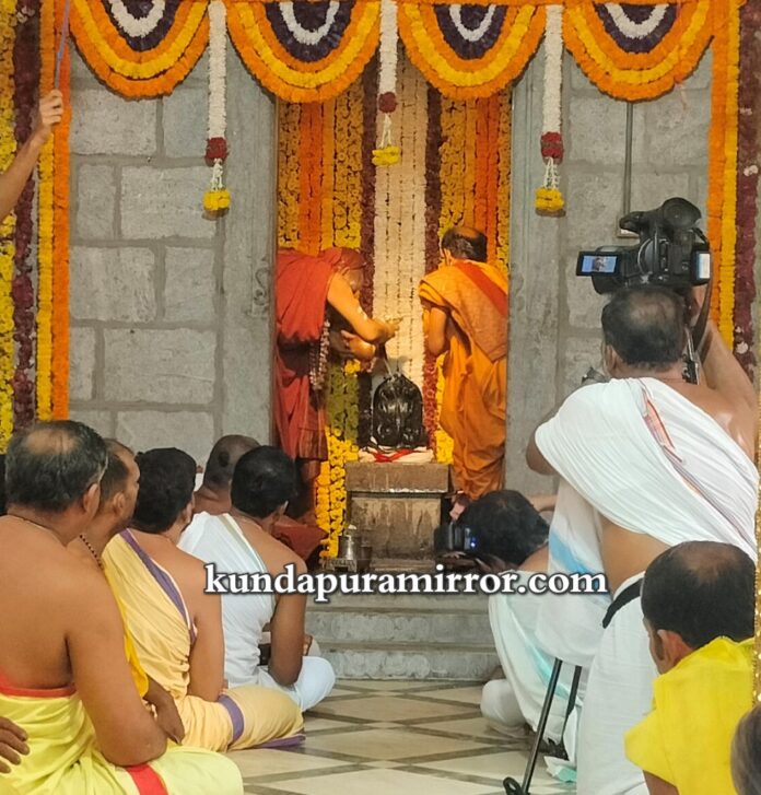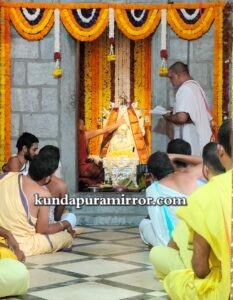ಕುಂದಾಪುರ :ವ್ಯಾಪಾರ, ವ್ಯವಹಾರ ಹಾಗೂ ವ್ಯವಾಹಾರಿಕ ಕೆಲಸದ ಜೊತೆಗೆ ಆಧ್ಯಾತ್ಮಿಕ ಕೆಲಸದ ಸಂಬಂಧವು ಮನುಷ್ಯನಿಗೆ ಅವಶ್ಯಕವಾಗಿದೆ. ಆಧ್ಯಾತ್ಮಿಕ ಕಾರ್ಯದಿಂದ ಜೀವನವು ಉದ್ಧಾರ ಆಗಲು ಬೇಕಾದ ಶಕ್ತಿ, ಪುಣ್ಯ ನಮಗೆ ಪ್ರಾಪ್ತವಾಗುತ್ತದೆ. ಜೀವನ ಸಾರ್ಥಕ, ಜೀವನದಲ್ಲಿ ಉದ್ಧಾರವಾಗಲು ಭಗವಂತನ ಕೃಪೆ ಅವಶ್ಯಕ. ಭಗವಂತನ ಸೇವೆಯಲ್ಲಿ ತೊಡಗಿಸಿಕೊಂಡಾಗ ಜೀವನ ಸಾರ್ಥಕವಾಗುತ್ತದೆ. ಎಷ್ಟೇ ಕೆಲಸವಿದ್ದರೂ ಭಗವಂತನ ಆರಾಧನೆಗೋಸ್ಕರ, ಭಗವತ್ ಸೇವೆ ಮಾಡಲು ನಮ್ಮ ಸಮಯವನ್ನು ಕೊಡಲೇ ಬೇಕು ಎಂದು ದಕ್ಷಿಣಾಮ್ನಾಯ ಶೃಂಗೇರಿ ಶ್ರೀ ಶಾರದಾ ಪೀಠಾಧೀಶ್ವರ ಶ್ರೀ ವಿಧುಶೇಖರ ಭಾರತೀ ಮಹಾಸ್ವಾಮೀಜಿ ಹೇಳಿದರು.