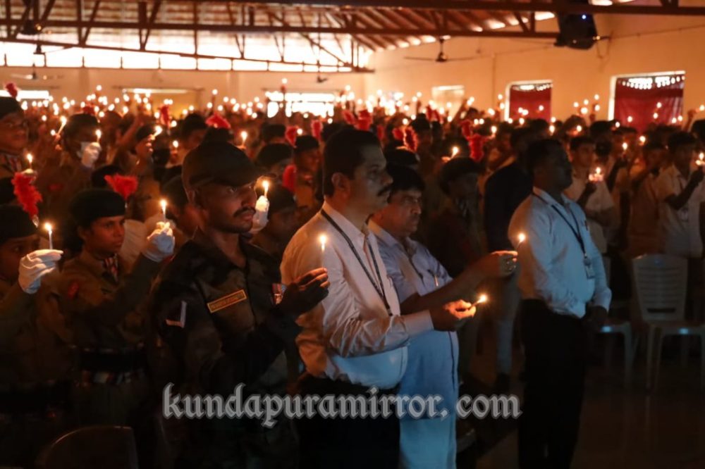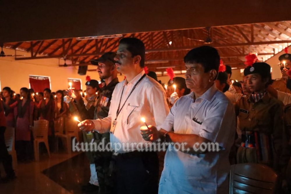ಕಾಲೇಜಿನ ಎಲ್ಲಾ ವಿದ್ಯಾರ್ಥಿಗಳು,ಬೋಧಕ ಬೋಧಕೇತರರು ಕೈಯಲ್ಲಿ ಮೇಣದ ದೀಪ ಬೆಳಗಿಸಿ, ದೇಶಭಕ್ತಿ ಗೀತೆ ಹಾಡುವುದರ ಮೂಲಕ ಹುತಾತ್ಮರ ಆತ್ಮಕ್ಕೆ ದೀಪ ಪ್ರಜ್ವಲನದ ಶ್ರದ್ಧಾಂಜಲಿ ಸಲ್ಲಿಸಿದ್ದರು.