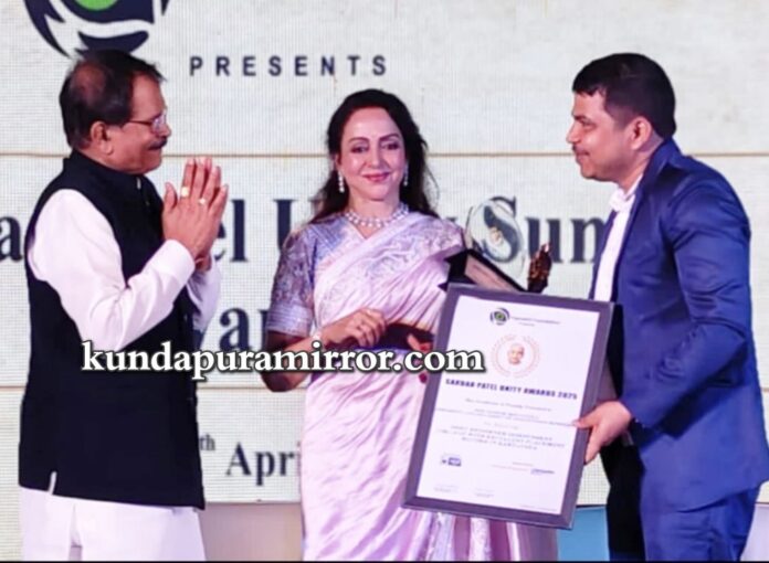 ಹೆಮ್ಮಾಡಿ :ಏಪ್ರಿಲ್ 11ರಂದು ಗೋವಾದಲ್ಲಿ ನಡೆದ ಪ್ರತಿಷ್ಠಿತ ಟೊಪ್ನೆಟೆಕ್ ಪೌಂಡೇಶನ್ ನವರು ಕೊಡಮಾಡುವ ರಾಷ್ಟ್ರೀಯ ಮಟ್ಟದ ಪ್ರಶಸ್ತಿ ಸರ್ದಾರ್ ಪಟೇಲ್ ಯುನಿಟಿ ಅವಾರ್ಡ್ಸ್ 2025-“ಶಿಕ್ಷಣ ಮತ್ತು ರಾಷ್ಟ್ರ ನಿರ್ಮಾಣದಲ್ಲಿ ಅತ್ಯಂತ ಸ್ಪೂರ್ತಿದಾಯಕ ವ್ಯಕ್ತಿತ್ವ” ಪ್ರಶಸ್ತಿಯನ್ನು ಜನತಾ ಸಮೂಹ ಶಿಕ್ಷಣ ಸಂಸ್ಥೆಗಳ ಅಧ್ಯಕ್ಷರು ಹಾಗೂ ಜನತಾ ಪದವಿಪೂರ್ವ ಕಾಲೇಜಿನ ಪ್ರಾಂಶುಪಾಲರಾದ ಗಣೇಶ ಮೊಗವೀರರಿಗೆ ಪ್ರದಾನ ಮಾಡಲಾಯಿತು.