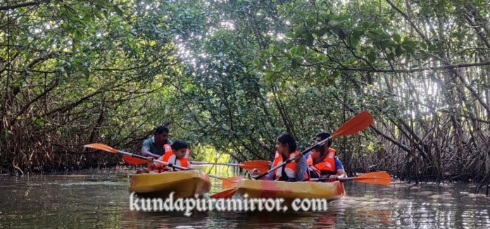 ಕುಂದಾಪುರ: ಉಡುಪಿ ಜಿಲ್ಲೆಯಲ್ಲಿ ಪ್ರವಾಸೋಧ್ಯಮ ಬೆಳವಣಿಗೆಗೆ ವಿಫುಲ ಅವಕಾಶಗಳಿವೆ ಎನ್ನುವ ಮಾತು ಯಾವಾಗಲೂ ಕೇಳಿ ಬರುತ್ತದೆ ಆದರೆ ಅದರ ಸಮರ್ಥನೆಗೆ ತಕ್ಕಂತೆ ಜಿಲ್ಲೆಯಲ್ಲಿ ಹೆಚ್ಚಿನ ಪ್ರವಾಸಿ ಚಟುವಟಿಕೆಗಳು ಇನ್ನೂ ಆರಂಭಗೊಳ್ಳಬೇಕಿದೆ. ಹಿನ್ನೀರಿನ ಲಾಭವನ್ನು ಅತ್ಯಂತ ಯಶಸ್ವಿಯಾಗಿ ಪ್ರವಾಸೋದ್ಯಮಕ್ಕೆ ಬಳಸಿಕೊಂಡಿರುವ ಕೇರಳ ರಾಜ್ಯದಷ್ಟೇ ಅವಕಾಶಗಳು ಇಲ್ಲಿ ಇದ್ದರೂ ಸಹ ಅದರ ಬಳಕೆ ಮಾಡಿಕೊಂಡಿರುವುದು ಕಡಿಮೆ. ಆದರೆ ಇದಕ್ಕೆ ಅಪವಾದವೆಂಬಂತೆ ಇತ್ತೀಚೆಗೆ ಜಿಲ್ಲೆಯ ಹಿನ್ನೀರಿನ ಪ್ರದೇಶಗಳನ್ನು ಪ್ರವಾಸೋದ್ಯಮ ಚಟುವಟಿಕೆಗಳಿಗೆ ಬಳಸಿಕೊಳ್ಳುತ್ತಿದ್ದು, ಹೌಸ್ ಬೋಟ್, ಕುದ್ರುಗಳಿಗೆ ಪ್ರವಾಸ, ಕಯಾಕಿಂಗ್ ಚಟುವಟಿಕೆಯಂತಹ ಹೊಸ ಪ್ರಯತ್ನಗಳು ನಡೆಯುತ್ತಿದ್ದು, ಇದಕ್ಕೆ ಪೂರಕವೆಂಬಂತೆ ಜಿಲ್ಲೆಯ ಸಾಲಿಗ್ರಾಮ ಸಮೀಪದಲ್ಲಿ ಸೀತಾ ನದಿಯ ಹಿನ್ನೀರಿನಲ್ಲಿನ ಕಾಂಡ್ಲಾ ವನದ ಮಧ್ಯದಲ್ಲಿ ಸಂಚರಿಸುವ ಕಯಾಕಿಂಗ್ ಸಾಹಸ ಯಾನ , ಪ್ರವಾಸಿಗರಿಗೆ ಪ್ರವಾಸದ ಹೊಸ ಅನುಭವ ನೀಡಲಿದೆ.