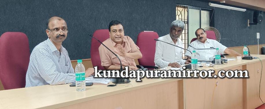 ಕುಂದಾಪುರ ತಾಲೂಕು ಪಂಚಾಯತ್ ಸಭಾಂಗಣದಲ್ಲಿ ಕುಂದಾಪುರ ವಿಧಾನಸಭಾ ಕ್ಷೇತ್ರದ ದೂರವಾಣಿ ಸಮಸ್ಯೆ ಕುರಿತು ಗುರುವಾರ ಬಿಎಸ್ಎನ್ಎಲ್ ಅಧಿಕಾರಿಗಳ ಸಭೆ ನಡೆಸಿ ಮಾತನಾಡಿದರು.