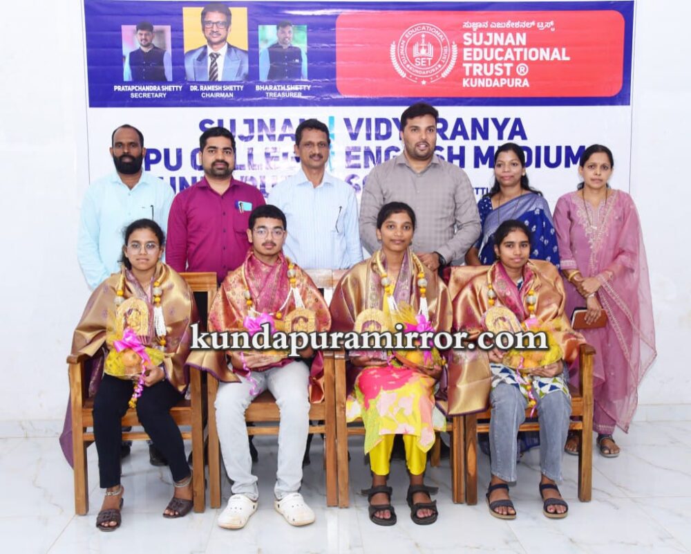 ಕುಂದಾಪುರ :ಎಸ್.ಎಸ್.ಎಲ್.ಸಿ. ಪರೀಕ್ಷಾ ಫಲಿತಾಂಶ ನಮ್ಮ ಸಂಸ್ಥೆಯು ರಾಜ್ಯಮಟ್ಟದಲ್ಲಿ 10ರೊಳಗಿನ 6 ರ್ಯಾಂಕ್ ಗಳನ್ನು ಪಡೆದು ಅಮೋಘ ಸಾಧನೆ ಮಾಡಿದೆ. ಪ್ರಾವ್ಯ ಪಿ. ಶೆಟ್ಟಿ 625ಕ್ಕೆ 623 ಅಂಕ ಗಳಿಸುವುದರ ಮೂಲಕ ರಾಜ್ಯಕ್ಕೆ 3ನೇ ಸ್ಥಾನ ಪಡೆಯುವ ಮೂಲಕ ಸಾಧನೆ ಮಾಡಿದ್ದಾರೆ. ಸಂಸ್ಥೆಯ ವಿದ್ಯಾರ್ಥಿ ಆಯುಷ್ ಯು ಶೆಟ್ಟಿ 625ಕ್ಕೆ 622 ಅಂಕ ಗಳಿಸುವುದರ ಮೂಲಕ ರಾಜ್ಯಕ್ಕೆ 4ನೇ ರ್ಯಾಂಕ್ ಪಡೆದಿದ್ದಾನೆ. ಸಂಸ್ಥೆಯ ವಿದ್ಯಾರ್ಥಿನಿ ಅನುಶ್ರೀ 625ಕ್ಕೆ 620 ಅಂಕ ಗಳಿಸುವುದರ ಮೂಲಕ ರಾಜ್ಯಕ್ಕೆ 6ನೇ ರ್ಯಾಂಕ್ ಪಡೆದಿದ್ದಾಳೆ. ಅಪೇಕ್ಷಾ ಶೆಟ್ಟಿ 625ಕ್ಕೆ 619 ಅಂಕಗಳಿಸುವುದರ ಮೂಲಕ ರಾಜ್ಯಕ್ಕೆ 7ನೇ ರ್ಯಾಂಕ್ ಪಡೆದಿದ್ದಾಳೆ. ಸುಖಿ ಎಸ್. ಶೆಟ್ಟಿ 625 ಕ್ಕೆ 618 ಅಂಕಗಳಿಸುವುದರ ಮೂಲಕ ರಾಜ್ಯಕ್ಕೆ 8ನೇ ರ್ಯಾಂಕ್ ಪಡೆದಿದ್ದಾಳೆ. ದರ್ಶನ್ ಕೆ.ಯು. 625 ಕ್ಕೆ 616 ಅಂಕ ಪಡೆಯುವುದರ ಮೂಲಕ ರಾಜ್ಯಕ್ಕೆ 10ನೇ ರ್ಯಾಂಕ್ ಪಡೆದಿದ್ದಾನೆ ಎಂದು ಸುಜ್ಞಾನ್ ಎಜುಕೇಶನಲ್ ಟ್ರಸ್ಟ್ ಅಧ್ಯಕ್ಷರಾದ ಡಾ.ರಮೇಶ ಶೆಟ್ಟಿ ತಿಳಿಸಿದ್ದಾರೆ.