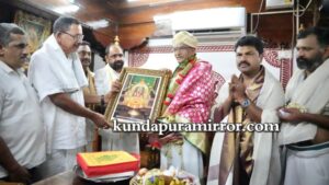 ಕುಂದಾಪುರ: ಕೊಲ್ಲೂರು ಶ್ರೀಮೂಕಾಂಬಿಕಾ ಕ್ಷೇತ್ರವನ್ನು ಯಾವ ರೀತಿಯಲ್ಲಿ ಅಭಿವೃದ್ಧಿ ಪಡಿಸಬೇಕು ಎನ್ನುವ ಕುರಿತು ಸ್ಥಳೀಯ ಸಂಸದರು, ಶಾಸಕರು ಹಾಗೂ ದೇಗುಲದವರ ಅಭಿಪ್ರಾಯ ಪಡೆದುಕೊಂಡು ಕೇಂದ್ರ ಸರ್ಕಾರ ಸ್ಪಂದಿಸಲಿದೆ ಎಂದು ಕೇಂದ್ರ ಪ್ರವಾಸೋದ್ಯಮ ಸಚಿವ ಗಜೇಂದ್ರ ಸಿಂಗ್ ಶೇಖಾವತ್ ಹೇಳಿದರು.