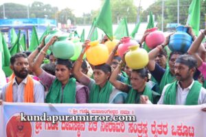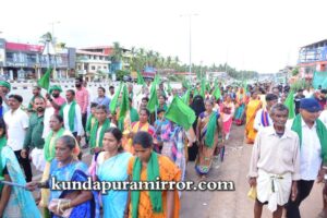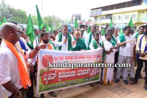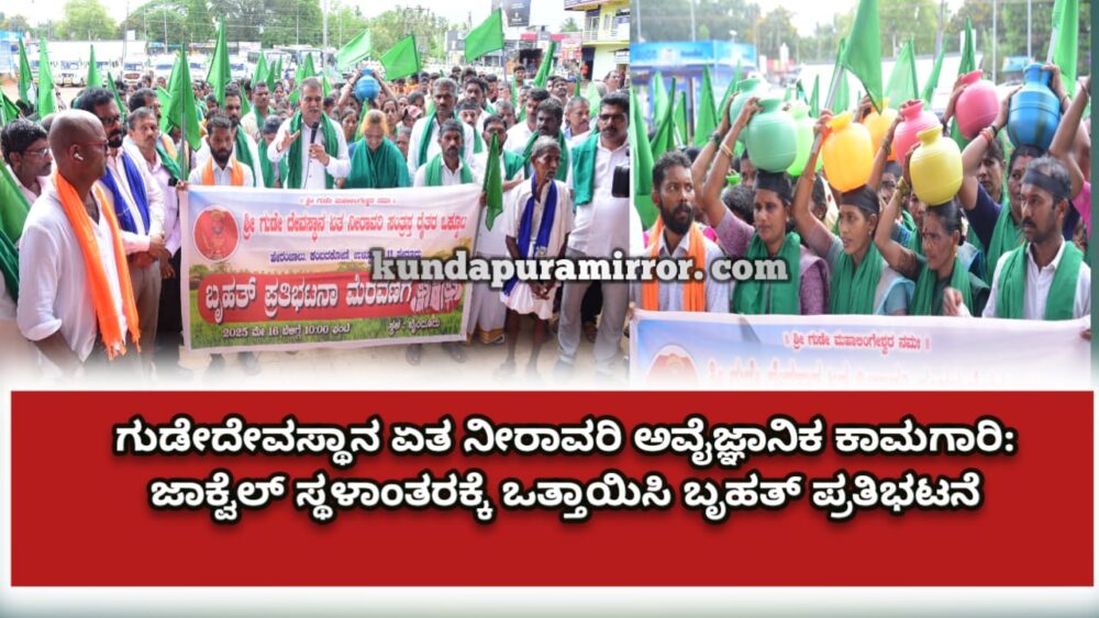 ಬೈಂದೂರು :ಖಂಬದಕೋಣೆ ಗ್ರಾ.ಪಂ. ವ್ಯಾಪ್ತಿಯ ಗುಡೇದೇವಸ್ಥಾನ ಏತ ನೀರಾವರಿ ರೂ.72 ಕೋಟಿ ಯೋಜನೆಯನ್ನು ಹಳಗೇರಿ ಅಚ್ಚುಕಟ್ಟು ಪ್ರದೇಶದ ರೈತರಿಗೆ ಅನಾನುಕೂಲವಾಗುವಂತೆ ಮಾರ್ಪಡಿಸಿದ ಅಧಿಕಾರಿಗಳ ಮೇಲೆ ಶಿಸ್ತುಕ್ರಮವಾಗಬೇಕು, ಹಾಗೂ ಜಾಕ್ವೆಲ್ ಅನ್ನು ಸ್ಥಳಾಂತರಿಸಿ ಈ ಯೋಜನೆ ರೈತರಿಗೆ ಅನುಕೂಲವಾಗುವಂತೆ ಕ್ರಮ ಜರುಗಿಸಬೇಕು ಎಂದು ಆಗ್ರಹಿಸಿ ಶ್ರೀ ಗುಡೇದೇವಸ್ಥಾನ ಏತನೀರಾವರಿ ಸಂತ್ರಸ್ತ ರೈತರ ಒಕ್ಕೂಟ-ಹೇರಂಜಾಲು, ಹಳಗೇರಿ, ನೂಜಾಡಿ ವತಿಯಿಂದ ಬೃಹತ್ ಪ್ರತಿಭಟನೆ ಶುಕ್ರವಾರ ನಡೆಯಿತು.
