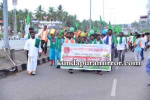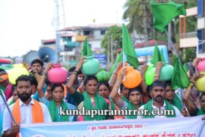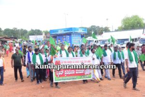ಚಲೋ ಬೈಂದೂರು ಪ್ರತಿಭಟನಾ ಮೆರವಣಿಗೆಯಲ್ಲಿ ಖಾಲಿ ಕೊಡಪಾನವನ್ನು ಪ್ರದರ್ಶಿಸಲಾಯಿತು. ಕಪ್ಪು ಪಟ್ಟಿ ಧರಿಸಿ ಆಕ್ರೋಶ ವ್ಯಕ್ತ ಪಡಿಸಲಾಯಿತು. ಶಂಖನಾದ ಮೊಳಗಿಸಲಾಯಿತು. ಮೆರವಣಿಗೆಯಲ್ಲಿ ಸಾಗಿಬಂದ ರೈತರು, ಐದು ಗ್ರಾಮದ ಗ್ರಾಮಸ್ಥರು ತಾಲೂಕು ಆಡಳಿತ ಸೌಧದ ಎದುರು ಜಮಾಯಿಸಿದರು.