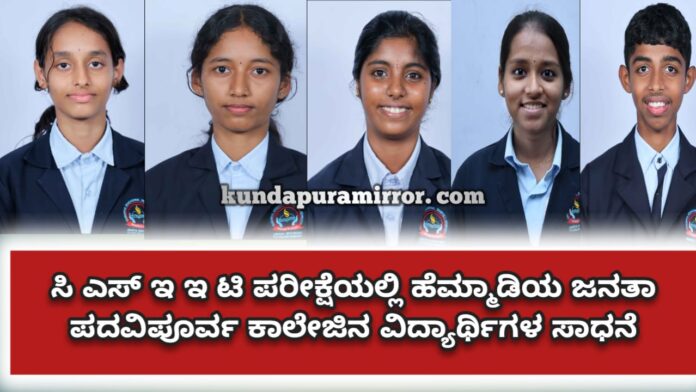 ಕುಂದಾಪುರ: ಇನ್ಸಿಟ್ಯೂಟ್ ಆಫ್ ಕಂಪೆನಿ ಸೆಕ್ರೇಟರಿಸ್ ಇನ್ ಇಂಡಿಯಾದವರು ನಡೆಸಿದ ಸಿ.ಎಸ್.ಇ.ಇ.ಟಿ(ಕಂಪೆನಿ ಸಕ್ರೇಟರಿ ಎಕ್ಸಿಕ್ಯೂಟಿವ್ ಎಂಟ್ರೆನ್ಸ್ ಟೆಸ್ಟ್) ಪ್ರವೇಶ ಪರೀಕ್ಷೆಯಲ್ಲಿ ಹೆಮ್ಮಾಡಿ ಜನತಾ ಪದವಿ ಪೂರ್ವ ಕಾಲೇಜಿನ ವಿದ್ಯಾರ್ಥಿಗಳು ಅತ್ಯುತ್ತಮ ಅಂಕಗಳೊಂದಿಗೆ ತೇರ್ಗಡೆ ಹೊಂದಿದ್ದಾರೆ.