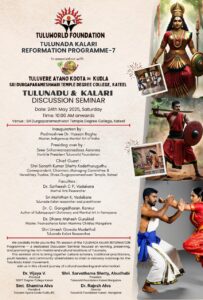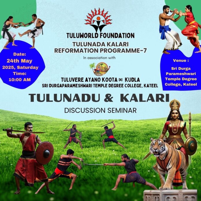 ಕುಂದಾಪುರ: ಜಗತ್ತಿನ ಅತ್ಯಂತ ಪ್ರಾಚೀನ ಯೋಧಕಲೆ ‘ತುಳುನಾಡು ಕಲರಿ’ ಪುನರುಜ್ಜೀವನಗೊಳ್ಳುತ್ತಿರುವ ಹಿನ್ನೆಲೆಯಲ್ಲಿ, ತುಳುವರ್ಲ್ಡ್ ಫೌಂಡೇಶನ್ ಹಾಗೂ ತುಳುವೆರೆ ಆಯನ ಕೂಟ (ರಿ) ಕುಡ್ಲ ಶ್ರೀ ದುರ್ಗಾಪರಮೇಶ್ವರಿ ಪದವಿ ಕಾಲೇಜ್ ಕಟೀಲ್ ಇವರ ಸಂಯುಕ್ತ ಆಶ್ರಯದಲ್ಲಿ “ತುಳುನಾಡ ಕಲರಿ ಮರುಸೃಷ್ಟಿ ಗೊಳಿಸುವ ಕಾರ್ಯಕ್ರಮಗಳ ಭಾಗವಾಗಿ “ತುಳುನಾಡು ಮತ್ತು ಕಲರಿ” ವಿಷಯಾಧಾರಿತ ಚರ್ಚಾ ಸಮ್ಮೇಳನ ಮೇ 24ರಂದು ಶನಿವಾರ ಬೆಳಿಗ್ಗೆ 10 ಗಂಟೆಗೆ ಶ್ರೀ ದುರ್ಗಾಪರಮೇಶ್ವರಿ ದೇವಾಲಯ ಪದವಿ ಕಾಲೇಜು, ಕಟೀಲಿನಲ್ಲಿ ನಡೆಯಲಿದೆ.