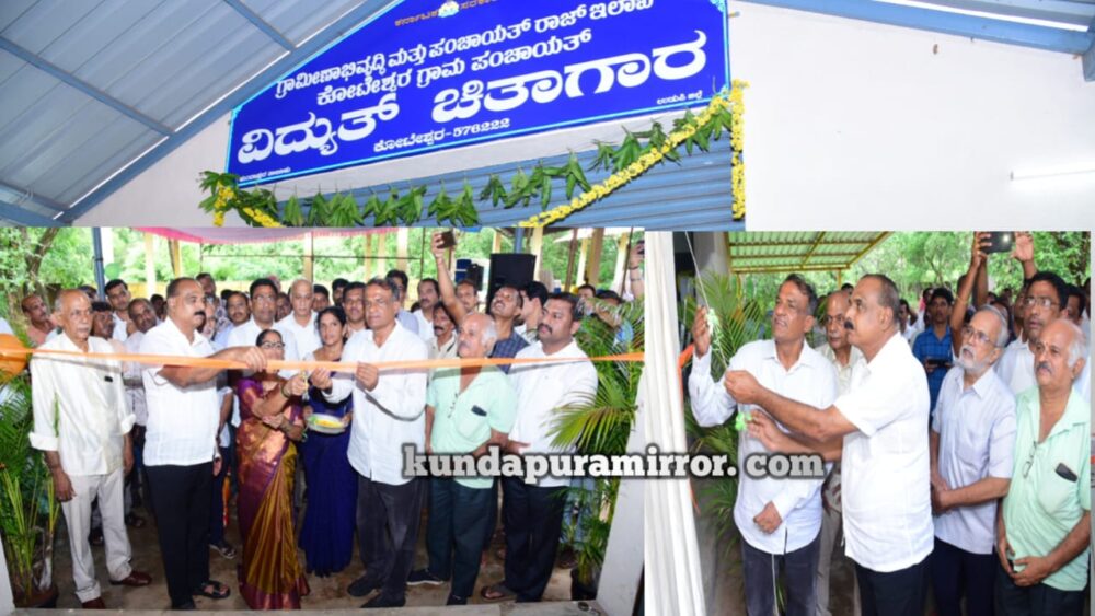 ಗ್ರಾಮೀಣಾಭಿವೃದ್ಧಿ ಮತ್ತು ಪಂಚಾಯತ್ ರಾಜ್ ಇಲಾಖೆ, ಜಿಲ್ಲಾ ಪಂಚಾಯತ್ ಉಡುಪಿ, ತಾಲೂಕು ಪಂಚಾಯತ್ ಕುಂದಾಪುರ ಮತ್ತು ಗ್ರಾಮ ಪಂಚಾಯತ್ ಕೋಟೇಶ್ವರ ಇದರ ವತಿಯಿಂದ ಶಾಸಕರ ಪ್ರದೇಶಾಭಿವೃದ್ಧಿ ನಿಧಿ, ಧಾರ್ಮಿಕ ದತ್ತಿ ಇಲಾಖೆ ಹಾಗೂ ಕೋಟೇಶ್ವರ ಗ್ರಾಪಂ.ನ ನಿಧಿಯಿಂದ ಸುಮಾರು 96 ಲಕ್ಷ ರೂ. ವೆಚ್ಚದಲ್ಲಿ ಕೋಟೇಶ್ವರದ ಹಿಂದು ರುದ್ರಭೂಮಿಯಲ್ಲಿ ನೂತನವಾಗಿ ನಿರ್ಮಿಸಲಾಗಿರುವ ವಿದ್ಯುತ್ ಚಿತಾಗಾರವನ್ನು ಲೋಕಾರ್ಪಣೆಗೊಳಿಸಿ ಅವರು ಮಾತನಾಡಿದರು.