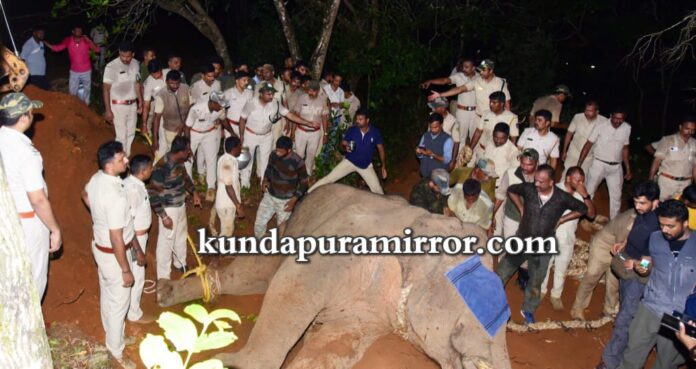 ಕಾರ್ಯಾಚರಣೆಯಲ್ಲಿ ಸಕ್ರೆಬೈಲಿನ ಬಾಲಚಂದ್ರ, ಸೋಮಣ್ಣ, ಬಹಾದ್ದೂರ್, ಹಾಗೂ ಮೈಸೂರು ಆನೆ ಶಿಬಿರದಿಂದ ೇಕಲವ್ಯ, ಭೀಮ ಹಾಗೂ ಮಹೇಂದ್ರ ಎಂಬ ಹೆಸರಿನ ಆನೆಗಳು ಭಾಗವಹಿಸಿದ್ದವು. ಚಿಕ್ಕಮಗಳೂರಿನ ಎಟಿಎಫ್ ತಂಡ ಭಾಗವಹಿಸಿತ್ತು. ಹಾಸನದ ಅರಣ್ಯ ವಿಭಾಗದಿಂದ ಔಷಧಿಗಳನ್ನು ತರಿಸಿಕೊಳ್ಳಲಾಗಿತ್ತು. ಕಾರ್ಯಾಚರಣೆಯಲ್ಲಿ ಸುಮಾರು 150 ಸಿಬ್ಬಂದಿಗಳು ಭಾಗಿಯಾಗಿದ್ದರು. ಕುದುರೆಮುಖ ಅರಣ್ಯ ವನ್ಯಜೀವಿ ವಿಭಾಗದ ಉಪ ಅರಣ್ಯ ಸಂರಕ್ಷಣಾಧಿಕಾರಿ ಶಿವರಾಂ ಬಾಬು, ಕುಂದಾಪುರ ಅರಣ್ಯ ವಿಭಾಗದ ಉಪ ಅರಣ್ಯ ಸಂರಕ್ಷಣಾಧಿಕಾರಿ ಗಣಪತಿ, ಸಹಾಯಕ ಅರಣ್ಯ ಸಂರಕ್ಷಣಾಧಿಕಾರಿಗಳಾದ ಪ್ರಕಾಶ್ ಪೂಜಾರಿ, ದಿನೇಶ್, ಸಕ್ರೆಬೈಲು ವನ್ಯಜೀವಿ ವಿಭಾಗದ ವಲಯಾರಣ್ಯಾಧಿಕಾರಿ ವಿನಯ್ ಜಿ.ಆರ್, ಸಿದ್ದಾಪುರ ವನ್ಯಜೀವಿ ವಿಭಾಗದ ವಲಯಾರಣ್ಯಾಧಿಕಾರಿ ಜಿ.ವಿ. ನಾಯ್ಕ್, ಶಂಕರನಾರಾಯಣ ವಲಯಾರಣ್ಯಾಧಿಕಾರಿ ಜ್ಯೋತಿ, ಶಂಕರನಾರಾಯಣ ಪೊಲೀಸ್ ಠಾಣೆಯ ಎಸ್ಐ ನಾಸೀರ್ ಹುಸೇನ್ ಇದ್ದರು. ಕುಂದಾಪುರ ಉಪವಿಭಾಗಾಧಿಕಾರಿ ರಶ್ಮೀ ಎಸ್.ಆರ್ ಹಾಗೂ ತಹಶಿಲ್ದಾರ್ ಪ್ರದೀಪ್ ಕುರ್ಡೇಕರ್ ಆಗಮಿಸಿ ಅಧಿಕಾರಿಗಳಿಂದ ಮಾಹಿತಿ ಪಡೆದುಕೊಂಡರು.