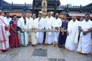ಕುಂದಾಪುರ :ಗೃಹ ಸಚಿವ ಡಾ.ಜಿ.ಪರಮೇಶ್ವರ್ ಕೊಲ್ಲೂರು ಶ್ರೀ ಮೂಕಾಂಬಿಕಾ ದೇವಸ್ಥಾನಕ್ಕೆ ಭೇಟಿ ನೀಡಿ, ಮೂಕಾಂಬಿಕೆಯ ದರ್ಶನ ಪಡೆದು ದೇವಳದಲ್ಲಿ ವಿಶೇಷ ಪೂಜೆಯಲ್ಲಿ ಭಾಗಿಯಾದರು. ಕ್ಷೇತ್ರದ ಪ್ರಧಾನ ಅರ್ಚಕ ನರಸಿಂಹ ಅಡಿಗ ಅವರ ನೇತೃತ್ವದಲ್ಲಿ ವಿಶೇಷ ಪೂಜೆ ನಡೆಯಿತು.