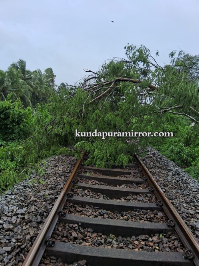 ಇಂದು ಬೆಳಿಗ್ಗೆ ಬೀಸಿದ ಭಾರಿ ಗಾಳಿ ಮಳೆಗೆ ಭಾರೀ ಗಾತ್ರದ ಮರ ಮುರಿದು ರೈಲ್ವೆ ವಿದ್ಯುತ್ ತಂತಿಗಳ ಮೇಲೆ ಬಿದ್ದ ಪರಿಣಾಮ ವಿದ್ಯುತ್ ತಂತಿಗಳು ತುಂಡಾಗಿತ್ತು. ಪರಿಣಾಮ ಈ ಮಾರ್ಗದಲ್ಲಿ ಸಂಚರಿಸುತ್ತಿದ್ದ ಮತ್ಸ್ಯಗಂಧಾ ಎಕ್ಸಪ್ರೆಸ್ ಮತ್ತು ಮಂಗಳೂರು-ಮಡಗಂವ್ ಪ್ಯಾಸೆಂಜರ್ ರೈಲು ಅಲ್ಲಲ್ಲೇ ನಿಂತುಕೊಂಡಿತು. ಕೂಡಲೇ ತುಂಡಾದ ವಿದ್ಯುತ್ ತಂತಿಗಳನ್ನು ಸರಿಪಡಿಸಿ ರೈಲು ಸಂಚಾರಕ್ಕೆ ಅನುವು ಮಾಡಿಕೊಡಲಾಯಿತು. ಸುಮಾರು ಎರಡು ಗಂಟೆ ಕಾಲ ರೈಲು ಸಂಚಾರದಲ್ಲಿ ವ್ಯತ್ಯಯ ಉಂಟಾಯಿತು.