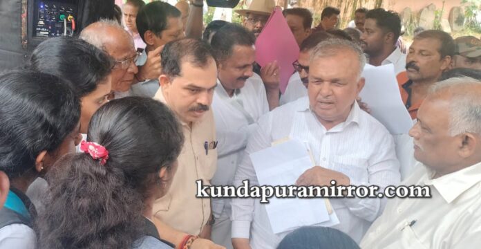 ಕುಂದಾಪುರ : ಕೊಲ್ಲೂರು, ವಂಡ್ಸೆ, ಶಂಕರನಾರಾಯಣ ಮಾರ್ಗದಲ್ಲಿ ಬಸ್ಸು ಸೌಕರ್ಯ ಕಲ್ಪಿಸಿಕೊಡಬೇಕೆಂದು ಆಗ್ರಹಿಸಿ ಶಂಕರನಾರಾಯಣ ಪ್ರಥಮ ದರ್ಜೆ ಕಾಲೇಜಿನ ವಿದ್ಯಾರ್ಥಿಗಳು ಮಂಗಳವಾರ ಕೋಟೇಶ್ವರದಲ್ಲಿ ಕರ್ನಾಟಕ ಸರ್ಕಾರದ ಸಾರಿಗೆ ಮತ್ತು ಮುಜರಾಯಿ ಸಚಿವ ರಾಮಲಿಂಗಾ ರೆಡ್ಡಿ ಅವರನ್ನು ಭೇಟಿ ಮಾಡಿ ಮನವಿ ಸಲ್ಲಿಸಿದರು.
