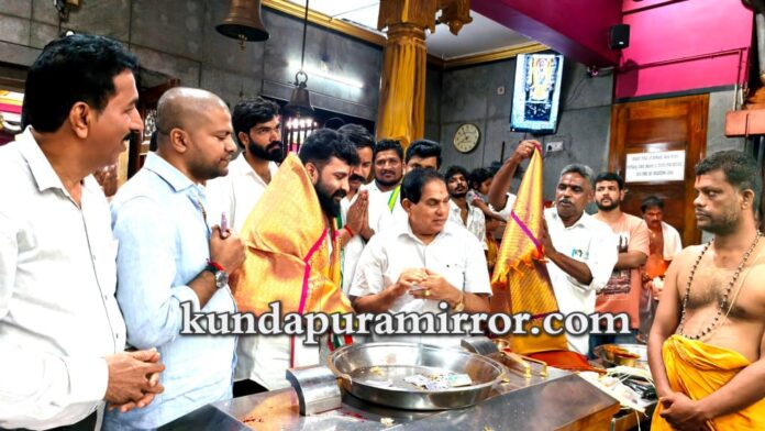 ಕೋಟ: ಇಲ್ಲಿನ ಕೋಟ ಅಮೃತೇಶ್ವರೀ ಹಲವು ಮಕ್ಕಳ ತಾಯಿ ದೇಗುಲಕ್ಕೆ ಕರ್ನಾಟಕ ರಾಜ್ಯ ಯುವ ಕಾಂಗ್ರೆಸ್ ಅಧ್ಯಕ್ಷ ಮಂಜುನಾಥ ಗೌಡ ಭೇಟಿ ನೀಡಿದರು.