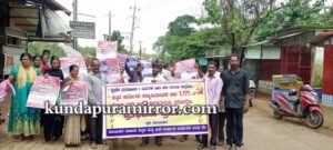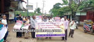 ಪ್ರತಿಭಟನೆಯಲ್ಲಿ ಶಂಕರ ಆಚಾರ್ಯ, ಭಾಸ್ಕರ,ಪ್ರಭಾಕರ ಗಾಣಿಗ, ನೇತ್ರಾವತಿ, ಸುರೇಶ್ ಗಾಣಿಗ ಮೊದಲಾದವರಿದ್ದರು.