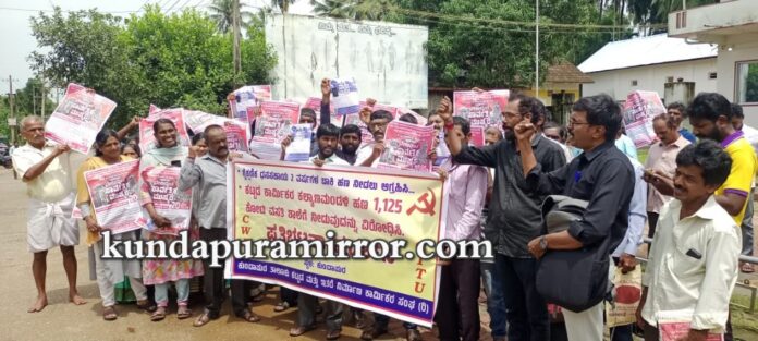 ಕುಂದಾಪುರ :ಚಿಕ್ಕಬಳ್ಳಾಪುರ ಜಿಲ್ಲೆಯ ನಂದಿ ಬೆಟ್ಟದಲ್ಲಿ ನಡೆದ ರಾಜ್ಯ ಸರ್ಕಾರದ ಸಚಿವ ಸಂಪುಟ ಸಭೆಯಲ್ಲಿ ಕಾರ್ಮಿಕರ ಮಕ್ಕಳಿಗೆ ರೂ.1125 ಕೋಟಿ ಕಟ್ಟಡ ಕಾರ್ಮಿಕ ಕಲ್ಯಾಣ ಮಂಡಳಿ ನಿಧಿ ಬಳಸಿ ವಸತಿ ಶಾಲೆಗಳನ್ನು ಆರಂಭಿಸಲು ನಿರ್ಧರಿಸಿರುವ ಕ್ರಮವನ್ನು ಕರ್ನಾಟಕ ರಾಜ್ಯ ಕಟ್ಟಡ ಮತ್ತು ಇತರೆ ನಿರ್ಮಾಣ ಕಾರ್ಮಿಕರ ಫೆಡರೇಷನ್ ಸಿಐಟಿಯುಗೆ ಸಂಯೋಜಿತಗೊಂಡಿರುವ ಕುಂದಾಪುರ ತಾಲೂಕು ಕಟ್ಟಡ ಮತ್ತು ಇತರೆ ನಿರ್ಮಾಣ ಕಾರ್ಮಿಕರ ಸಂಘ ವಿರೋಧಿಸಿದ್ದು, ಸರ್ಕಾರ ಈ ನಿರ್ಧಾರದಿಂದ ಹಿಂದೆ ಸರಿಯಬೇಕೆಂದು ಆಗ್ರಹಿಸಿ ಮತ್ತು ಹೈಕೋರ್ಟ ತೀರ್ಪಿನಂತೆ ಶೈಕ್ಷಣಿಕ ಧನ ಸಹಾಯ ಪಾವತಿಸಬೇಕು ಎಂದು ಒತ್ತಾಯಿಸಿ ಕಟ್ಟಡ ಕಾರ್ಮಿಕರು ಕುಂದಾಪುರ ವಂಡ್ಸೆ ಪೇಟೆಯಲ್ಲಿ ಪ್ರತಿಭಟನೆ ನಡೆಸಿದರು.