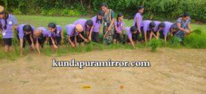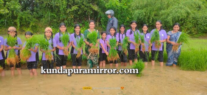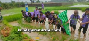 ಕುಂದಾಪುರ :ಹಳ್ನಾಡಿನ ತುಳಸಿ ವಿದ್ಯಾ ಮಂದಿರ ಆಂಗ್ಲ ಮಾಧ್ಯಮ ಶಾಲೆಯ ವಿದ್ಯಾರ್ಥಿಗಳು ಗದ್ದೆಯಲ್ಲಿ ನಾಟಿ ಮಾಡುವ ಮೂಲಕ ಕೃಷಿಯ ಅರಿವನ್ನು ಪಡೆದುಕೊಂಡರು. ಹಳ್ನಾಡಿನ ಸಮೀಪದ ಮೊಗವೀರ ಸಂಘಟನೆಯ ಅಧ್ಯಕ್ಷರು, ಕೃಷಿಕರಾದ ನಾಗೇಶ್ ಮೊಗವೀರ ಇವರ ಗದ್ದೆಯಲ್ಲಿ ಶನಿವಾರ ನಡೆದ ಪ್ರಾತ್ಯಕ್ಷಿಕೆಯಲ್ಲಿ 6, 7 ಮತ್ತು 8ನೇ ತರಗತಿ ಮಕ್ಕಳು ಭಾಗವಹಿಸಿ ಕೃಷಿ ಜ್ಞಾನ, ಪ್ರಸ್ತುತ ಕೃಷಿ ಭೂಮಿಯಲ್ಲಿ ರೈತರ ಸಮಸ್ಯೆ , ಕೃಷಿಯಲ್ಲಿ ಹೊಸ ತಂತ್ರಜ್ಞಾನಗಳು ಮುಂತಾದ ಮಾಹಿತಿಗಳನ್ನು ತಿಳಿದುಕೊಂಡರು.