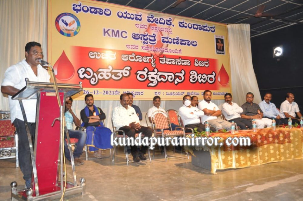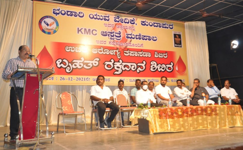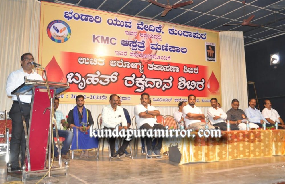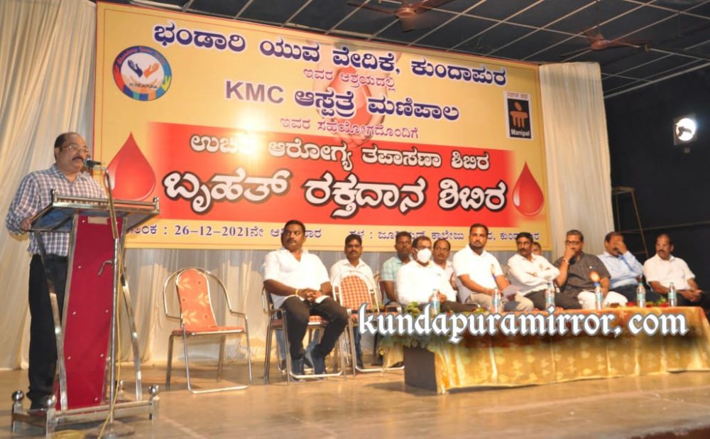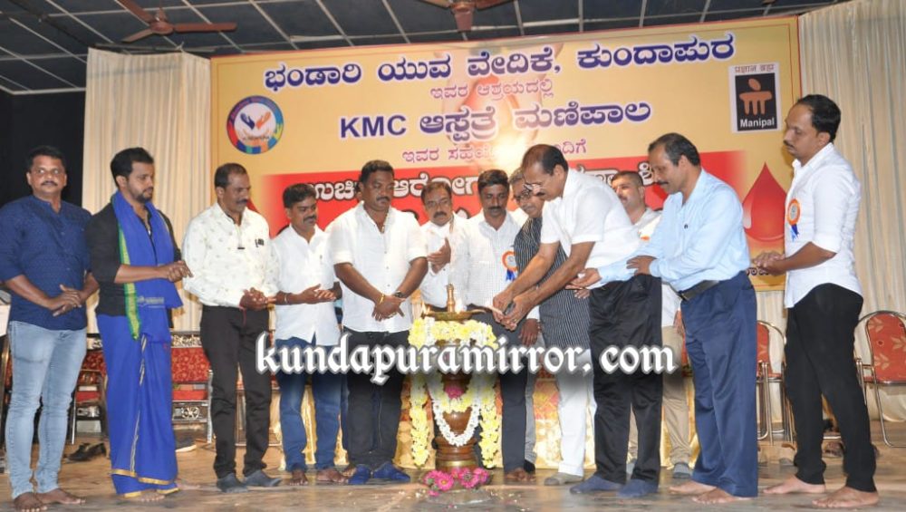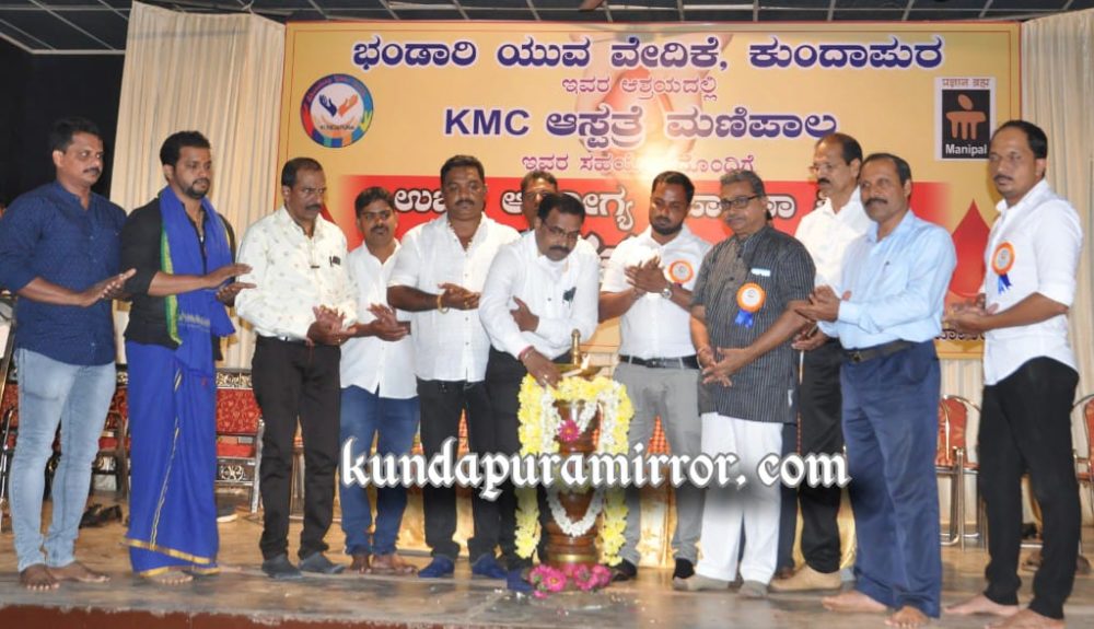 ಕುಂದಾಪುರ: ಭಂಡಾರಿ ಯುವ ವೇದಿಕೆ ಕುಂದಾಪುರ ಹಾಗೂ ಕೆಎಂಸಿ ಆಸ್ಪತ್ರೆ ಮಣಿಪಾಲದ ಸಹಯೋಗದಲ್ಲಿ ಕುಂದಾಪುರದ ಜೂನಿಯರ್ ಕಾಲೇಜಿನ ಕಲಾಮಂದಿರದಲ್ಲಿ ಉಚಿತ ಆರೋಗ್ಯ ತಪಾಸಣಾ ಶಿಬಿರ ಹಾಗೂ ಬೃಹತ್ ರಕ್ತದಾನ ಶಿಬಿರ ರವಿವಾರ ನಡೆಯಿತು.