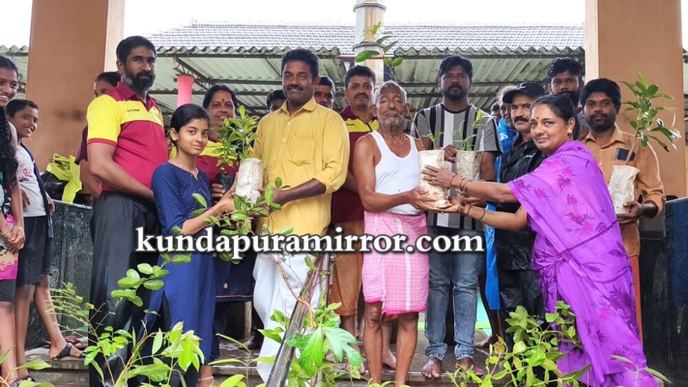 ಕೋಟ ಗ್ರಾಮಪಂಚಾಯತ್ ಉಪಾಧ್ಯಕ್ಷ ಪಾಂಡು ಪೂಜಾರಿ ಸ್ಥಳೀಯರಿಗೆ ಗಿಡ ಹಸ್ತಾಂತರಿಸಿದರು.
