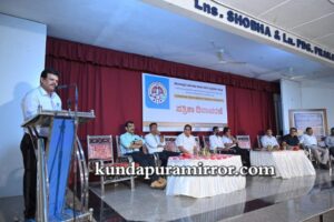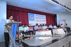 ಕುಂದಾಪುರ ತಾಲೂಕು ಕಾರ್ಯನಿರತ ಪತ್ರಕರ್ತರ ಸಂಘದ ನೇತೃತ್ವದಲ್ಲಿ ಭಂಡಾರ್ಕಾರ್ಸ್ ಕಾಲೇಜಿನ ರಾಧಾಬಾಯಿ ಹಾಲ್ ನಲ್ಲಿ ನಡೆದ ಪತ್ರಿಕಾ ದಿನಾಚರಣೆ ಹಾಗೂ ಸಂಘದ ಅಧೀಕೃತ ಸದಸ್ಯರ ಡೈರಕ್ಟರಿ ಬಿಡುಗಡೆ ಕಾರ್ಯಕ್ರಮವನ್ನು ಉದ್ಘಾಟಿಸಿ ಮಾತನಾಡಿದರು.