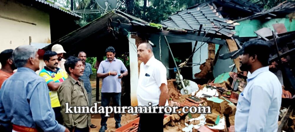 ಕುಂದಾಪುರ :ಇಲ್ಲಿನ ಕೋಟ ಗ್ರಾಮಪಂಚಾಯತ್ ವ್ಯಾಪ್ತಿಯ ಗಿಳಿಯಾರು ಗ್ರಾಮದ ಹರ್ತಟ್ಟು ಸೀತಾರಾಮ ದೇವಾಡಿಗ ಮನೆ ಬಾರಿ ಗಾಳಿಮಳೆಗೆ ಸಂಪೂರ್ಣ ಕುಸಿದು ಹಾನಿಗೊಂಡ ಹಿನ್ನಲ್ಲೆಯಲ್ಲಿ ಕುಂದಾಪುರ ಶಾಸಕ ಕಿರಣ್ ಕುಮಾರ್ ಕೊಡ್ಗಿ ಗುರುವಾರ ಭೇಟಿ ನೀಡಿದರು.