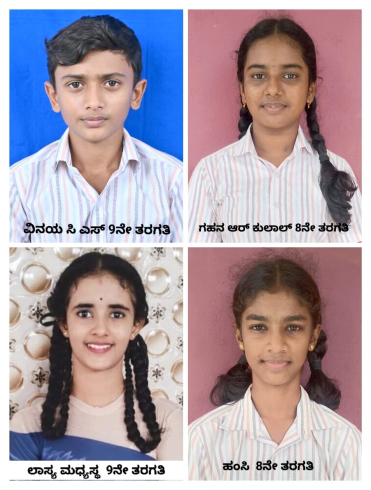 17ರ ವಯೋಮಾನದೊಳಗಿನ ವಿಭಾಗದಲ್ಲಿ ಪ್ರಥಮ ಸ್ಥಾನ ಪಡೆದ 9ನೇ ತರಗತಿ ವಿದ್ಯಾರ್ಥಿನಿ ಲಾಸ್ಯ ಮಧ್ಯಸ್ಥ, 14 ವಯೋಮಾನದೊಳಗಿನವರಲ್ಲಿ ಪ್ರಥಮ ಸ್ಥಾನ ಪಡೆದ 8ನೇ ತರಗತಿ ಹಂಸಿ, ಗಹನ ಆರ್. ಕುಲಾಲ್ ಹಾಗೂ 17ರ ವಯೋಮಾನದೊಳಗಿನ ವಿಭಾಗದಲ್ಲಿ ಮೊದಲ ಸ್ಥಾನ ಪಡೆದ 9ನೇ ತರಗತಿಯ ವಿನಯ್ ಸಿ.ಎಸ್. ಜಿಲ್ಲಾಮಟ್ಟಕ್ಕೆ ಆಯ್ಕೆಯಾದವರು.