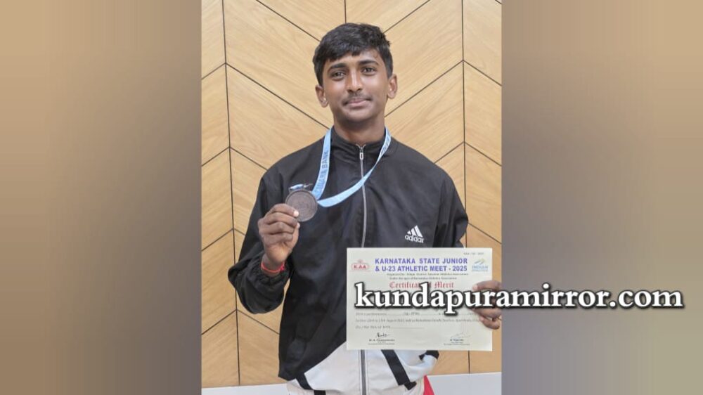 ಕುಂದಾಪುರ :ಉಡುಪಿ ಜಿಲ್ಲೆ ಅಮೆಚೂರ್ ಅಥ್ಲೆಟಿಕ್ ಅಸೋಸಿಯೇಷನ್ ಉಡುಪಿ ಇವರು ಅಜ್ಜರಕಾಡಿನ ಮಹಾತ್ಮಗಾಂಧಿ ಜಿಲ್ಲಾ ಕ್ರೀಡಾಂಗಣದಲ್ಲಿ ಆಯೋಜಿಸಿದ ರಾಜ್ಯಮಟ್ಟದ ಜೂನಿಯರ್ ಮತ್ತು ಸೀನಿಯರ್-23 ಅಥ್ಲೆಟಿಕ್ ಮೀಟ್-2025ರಲ್ಲಿ ಸುಜ್ಞಾನ ಪದವಿಪೂರ್ವ ಕಾಲೇಜಿನ ಸಮಿತ್ ಜಾವೆಲಿನ್ ಎಸೆತದಲ್ಲಿ ಮೂರನೇ ಸ್ಥಾನ ಗಳಿಸಿದ್ದಾನೆ.