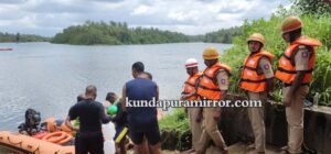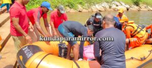 ಆಗ ಸ್ಥಳಕ್ಕೆ ಆಗಮಿಸಿದ ಎನ್.ಡಿ.ಆರ್.ಎಫ್ ತಂಡವು ತಮ್ಮ ಬೋಟ್ಗಳ ಮೂಲಕ ಕಾಣೆಯಾದ ಯುವಕನನ್ನು ಹುಡುಕಲು ಮೂರು ಬೋಟ್ಗಳಲ್ಲಿ ತೆರಳಿದರು. ನಾಪತ್ತೆಯಾಗಿದ್ದವನ್ನು ಹುಡುಕಾಡತೊಡಗಿದರು. ಆತ ಕಾಣದೇ ಇದ್ದಾಗ ಎನ್.ಡಿ.ಆರ್.ಎಫ್ ನ ಆರೇಳು ಜನ ಸಿಬ್ಬಂದಿಗಳು ನದಿ ಪಾತ್ರದಲ್ಲಿ ತೆರಳಿ ಹುಡುಕಾಟ ನಡೆಸಿದರೂ ಪತ್ತೆಯಾಗದ ಹಿನ್ನೆಲೆ, ಮುಳುಗುತಜ್ಞರಿಂದ ಹುಡುಕಾಟ ಆರಂಭಿಸಿದ ಸ್ವಲ್ಪ ಹೊತ್ತಿನಲ್ಲಿಯೇ ನೀರಿನಲ್ಲಿ ಮುಳುಗಿದ ವ್ಯಕ್ತಿಯನ್ನು ಎಳೆದು ತಂದು ಬೋಟ್ನಲ್ಲಿ ಹತ್ತಿಸಿಕೊಂಡು ದಡಕ್ಕೆ ತಂದರು. ಆ ಕ್ಷಣದಲ್ಲಿ ಆತ ಉಸಿರಾಟ ಇಲ್ಲದೇ ನಿಂತಿರುವುದನ್ನು ಕಂಡು ಆತನಿಗೆ ಸಿ.ಪಿ.ಆರ್ ಮಾಡುವುದರೊಂದಿಗೆ ಕೃತಕ ಉಸಿರಾಟ ನೀಡಿದ ಹಿನ್ನೆಲೆ, ಆತ ಉಸಿರಾಟ ಪುನರಾರಂಭಿಸಿದರು.