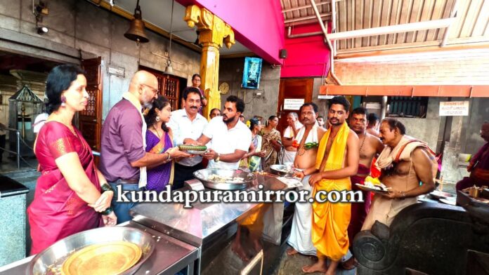 ದೇಗುಲದ ಅರ್ಚಕರು ದೇವಿಗೆ ವಿಶೇಷ ಪೂಜೆ ಸಲ್ಲಿಸಿ ಪ್ರಸಾದ ವಿತರಿಸಿದರು.