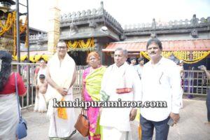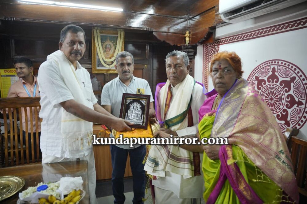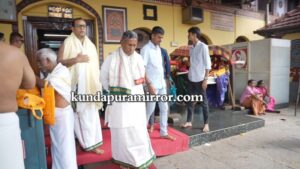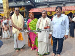 ಕುಂದಾಪುರ :ಕೊಲ್ಲೂರು ಶ್ರೀ ಮೂಕಾಂಬಿಕಾ ದೇವಸ್ಥಾನಕ್ಕೆ ಕರ್ನಾಟಕ ಸರ್ಕಾರದ ಮಾನ್ಯ ಆಹಾರ, ನಾಗರಿಕ ಸರಬರಾಜು ಮತ್ತು ಗ್ರಾಹಕರ ವ್ಯವಹಾರಗಳ ಸಚಿವರಾದ ಡಾ.ಕೆ. ಹೆಚ್. ಮುನಿಯಪ್ಪ ಅವರು ಭೇಟಿ ದೇವಿಯ ದರ್ಶನ ಪಡೆದು ಚಂಡಿಕಾ ಹೋಮದಲ್ಲಿ ಭಾಗಿಯಾದರು.
