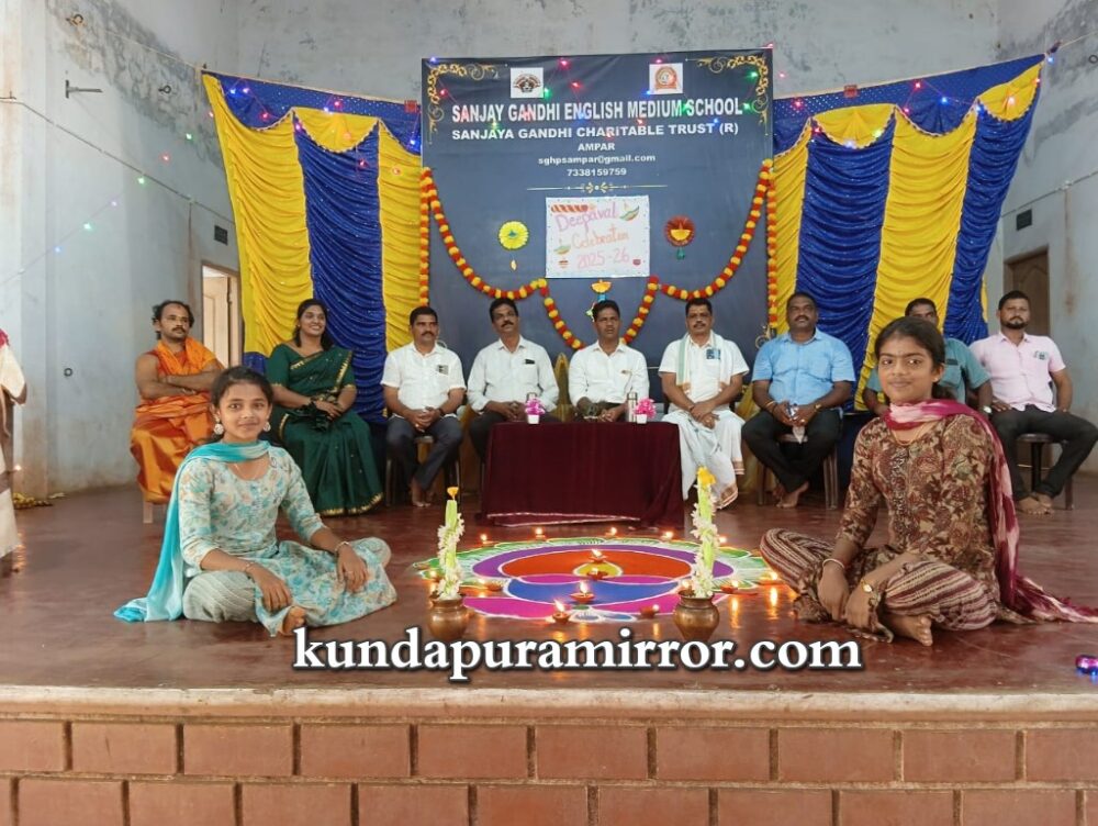 ಕುಂದಾಪುರ :ಅಂಪಾರು ಸಂಜಯ ಗಾಂಧಿ ಆಂಗ್ಲ ಮಾಧ್ಯಮ ಶಾಲೆಯಲ್ಲಿ ದೀಪಾವಳಿ ಹಬ್ಬವನ್ನು ಅದ್ಧೂರಿಯಾಗಿ, ಸಾಂಪ್ರದಾಯಿಕ ಶೈಲಿಯಲ್ಲಿ ಆಚರಿಸಲಾಯಿತು. ಈ ವಿಶೇಷ ಕಾರ್ಯಕ್ರಮದಲ್ಲಿ ವಿದ್ಯಾರ್ಥಿಗಳು, ಪೋಷಕರು ಹಾಗೂ ಸಂಜಯಗಾಂಧಿ ಚಾರಿಟೇಬಲ್ ಟ್ರಸ್ಟ್ ನ ಎಲ್ಲಾ ನಿರ್ದೇಶಕರು ಅತ್ಯಂತ ಉತ್ಸಾಹದಿಂದ ಭಾಗವಹಿಸಿದರು. ಇದು ನಾಡಿನ ಸಂಸ್ಕೃತಿಯ ಅನಾವರಣಕ್ಕೆ ವೇದಿಕೆಯಾಯಿತು.