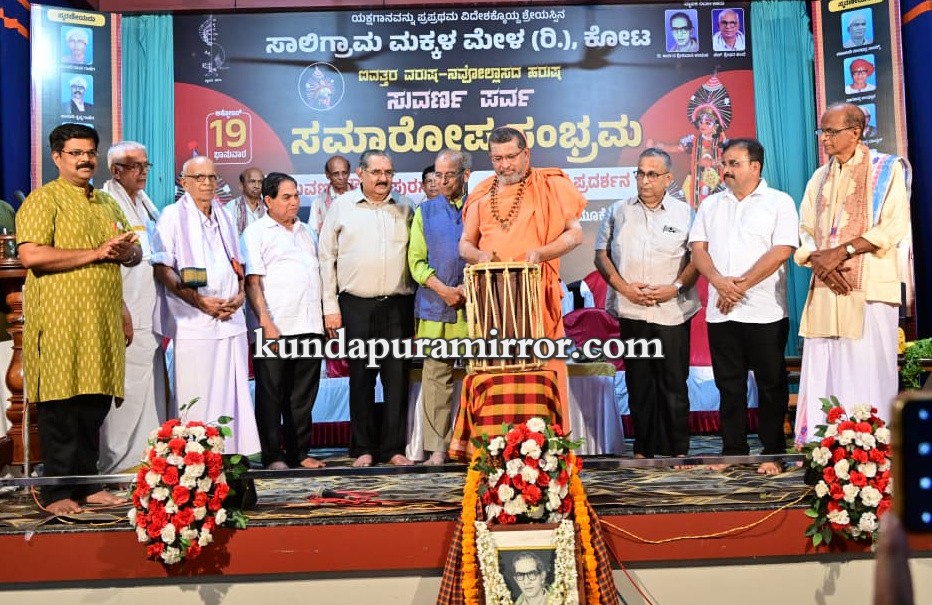 ಕುಂದಾಪುರ: ಯಕ್ಷಗಾನ ಎಂಬುದು ಮನೋಲ್ಲಾಸವನ್ನು ಹೆಚ್ಚಿಸುವ ಕಲೆ. ಜೀವನದಲ್ಲಿ ಮಾನಸಿಕವಾಗಿ ಕುಗ್ಗಿದ ಮನಸ್ಸುಗಳಿಗೆ ಯಕ್ಷಗಾನವು ಔಷಧೋಪಚಾರದಂತೆ. ಪರಂಪರೆಯ ಯಕ್ಷಗಾನದ ಶಾಸ್ತ್ರೀಯತೆಯನ್ನು ಉಳಿಸಿ ಬೆಳೆಸುವಲ್ಲಿ ಮಕ್ಕಳ ಯಕ್ಷಗಾನದ ಪ್ರದರ್ಶನಗಳು ಹೆಚ್ಚು ಫಲಪ್ರದ. ಮಕ್ಕಳ ಮನಸ್ಸು ಕಲ್ಮಶವಿರದ ಶುದ್ಧ ಮನಸ್ಸು. ಹಾಗಾಗಿ ಮಕ್ಕಳ ಪ್ರದರ್ಶನಗಳಲ್ಲಿ ಯಾವುದೇ ಅಪಸವ್ಯಗಳು ಕಾಣಿಸಿಕೊಳ್ಳುವುದಿಲ್ಲ. ಇತ್ತೀಚೆಗೆ ಯಕ್ಷಗಾನವು ವಾಣಿಜ್ಯೀಕರಣವಾದಾಗ ಅದರ ಮೂಲ ಸ್ವರೂಪಕ್ಕೆ ಧಕ್ಕೆ ಬಂದಿದೆ. ಕಲಾವಿದರ ವೈಯಕ್ತಿಕ ಮಾತುಕತೆಗಳೇ ರಂಗದ ಸಂಭಾಷಣೆಗಳಾಗಿ ಮೂಡಿಬರುತ್ತಿವೆ. ಇಂಥವುಗಳಿಗೆ ಕಡಿವಾಣ ಹಾಕಬೇಕು. ಯುವಜನತೆ ಸಮಾಜ ಬಾಹಿರ ಕೆಲಸದಲ್ಲಿ ತೊಡಗಿ ಕೊಳ್ಳುತ್ತಿರುವ ಈ ಹೊತ್ತಿನಲ್ಲಿ ಮಕ್ಕಳು ಯಕ್ಷಗಾನದಲ್ಲಿ ತೊಡಗಿಸಿ ಕೊಂಡಾಗ ಅವರಲ್ಲಿ ಉತ್ತಮ ಸಂಸ್ಕಾರ ಮೂಡುವುದಕ್ಕೆ ಸಾಧ್ಯ. ಉಡುಪ ಮತ್ತು ಹಂದೆಯವರಿಂದ ಸ್ಥಾಪಿಸಲ್ಪಟ್ಟ ಸಾಲಿಗ್ರಾಮ ಮಕ್ಕಳ ಮೇಳವು ಚಾರಿತ್ರಿಕ ದಾಖಲೆಯೊಂದಿಗೆ ಐವತ್ತು ವರ್ಷಗಳ ದಿಗ್ವಿಜಯವನ್ನು ಸಾಧಿಸಿರುವುದರ ಜತೆಗೆ ವಿಶ್ವಕ್ಕೆ ಪರಿಚಯಿಸಿಕೊಂಡಿದೆ. ಈ ಮೇಳದ ಕೀರ್ತಿ ಇನ್ನಷ್ಟು ಹೆಚ್ಚಲಿ ಎಂದು ಎಡನೀರು ಮಠಾಧೀಶರಾದ ಶ್ರೀ ಶ್ರೀ ಸಚ್ಚಿದಾನಂದ ಭಾರತೀ ಶ್ರೀಪಾದಂಗಳವರು ಆಶೀರ್ವದಿಸಿದರು.
