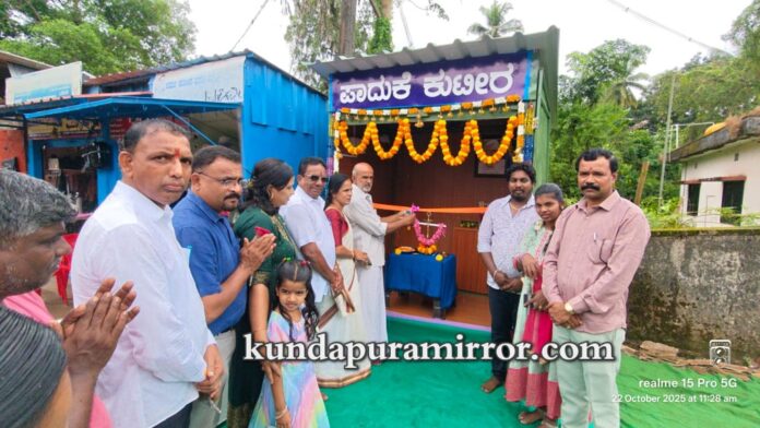 ಕುಂದಾಪುರ: ಶಾಸ್ತ್ರಿ ಸರ್ಕಲ್ ಸಮೀಪ ಸಮಾಜ ಕಲ್ಯಾಣ ಇಲಾಖೆಯ ಡಾ. ಬಾಬಾ ಜಗಜೀವನ್ ರಾಮ್ ಚರ್ಮ ಕೈಗಾರಿಕಾ ಅಭಿವೃದ್ಧಿ ನಿಗಮ ನಿಯಮಿತ ಇವರ ಆರ್ಥಿಕ ನೆರವಿನಿಂದ ನಿರ್ಮಾಣಗೊಂಡ ಪಾದುಕೆ ಕುಟಿರವನ್ನು ಪುರಸಭಾ ಅಧ್ಯಕ್ಷರಾದ ಮೋಹನ್ ದಾಸ್ ಶೆಣೈ ಉದ್ಘಾಟಿಸಿ ಶುಭ ಹಾರೈಸಿದರು.