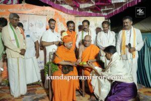 ಕಾರ್ಯಕ್ರಮದಲ್ಲಿ ಉಪಸ್ಥಿತರಿದ್ದು ಆಶೀರ್ವಚನ ನೀಡಿದ ಭಾರತಭೂಷಣ ಸ್ವಸ್ತಿಶ್ರೀ ಡಾ. ಚಾರುಕೀರ್ತಿ ಭಟ್ಟಾರಕ ಪಂಡಿತಾಚಾರ್ಯವರ್ಯ ಮಹಾ ಸ್ವಾಮೀಜಿಯವರು, ಸನಾತನ ಧರ್ಮದ ನಂಬಿಕೆ ಆಧಾರದಲ್ಲಿ ಬದುಕುವ ಎಲ್ಲಾ ಭಗವದ್ ಭಕ್ತರು ಶಿವ ದೇವಾಲಯ ನಿರ್ಮಾಣದಲ್ಲಿ ಕೈಜೋಡಿಸಬೇಕು, ಜೊತೆಗೆ ದೇವಸ್ಥಾನಗಳ ಊರು ಬಸ್ರೂರಿನ ಆಸುಪಾಸಿನಲ್ಲಿರುವ ತುಳುವೇಶ್ವರಿ ದೇವಸ್ಥಾನ ಸಹಿತ ಎಲ್ಲಾ ದೇವಸ್ಥಾನಗಳು ವೈಭವದಿಂದ ಪೂಜೆ ಪುನಸ್ಕಾರ ಜಾತ್ರೆ ನಡೆಸುವಂತಹಾಗಿ ಸಂಸ್ಕಾರ ಮತ್ತು ಭಕ್ತಿಯ ಕೇಂದ್ರವಾಗಲಿ ಎಂದು ಹರಸಿದರು, ಜೊತೆಗೆ ತನ್ನ ಸಹಕಾರವಿದ್ದು ಜೈನ ಮಠದಿಂದ ಎಲ್ಲ ಸಹಕಾರ ನೀಡುವ ಭರವಸೆಯನ್ನು ನೀಡಿದರು