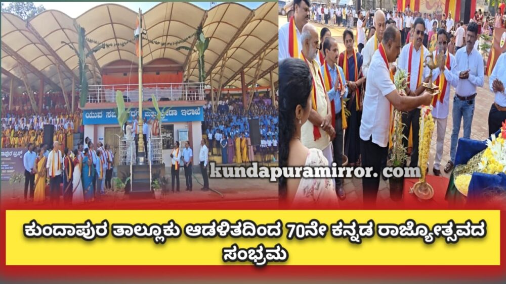 ತಾಲೂಕು ಆಡಳಿತದ ವತಿಯಿಂದ ಕುಂದಾಪುರದ ಗಾಂಧಿ ಮೈದಾನದಲ್ಲಿ ಶನಿವಾರ 70ನೇ ಕನ್ನಡ ರಾಜ್ಯೋತ್ಸವ ಪ್ರಯುಕ್ತ ಧ್ವಜಾರೋಹಣ ನೆರವೇರಿಸಿ ಅವರು ಸಂದೇಶ ನೀಡಿದರು.